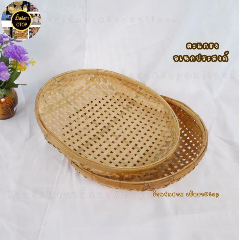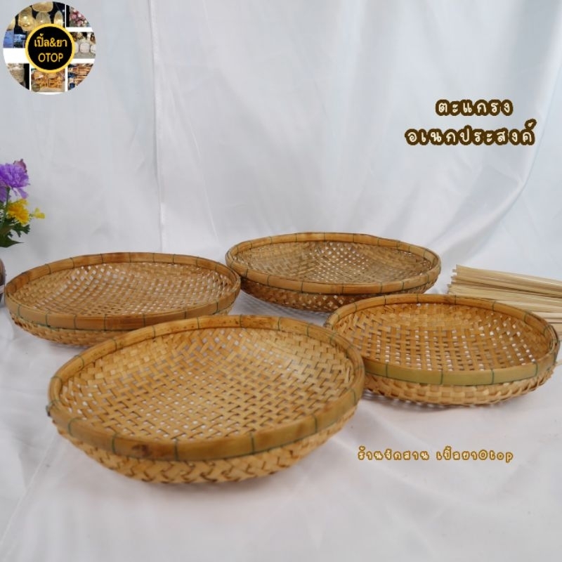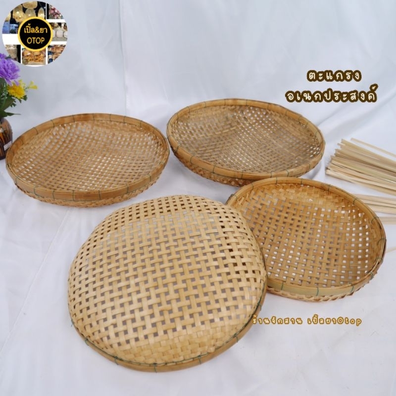 กระด้งสานไม้ไผ่ ตะแกรงรองน้ำมันตาถี่ ตะแกรงล้างผัก
