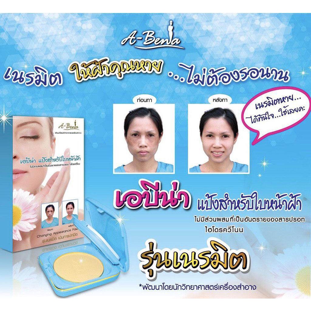 (สีฟ้า) (ตลับจริง) A-Bena แป้ง เอบีน่า ทาหน้า ปกปิดฝ้า ขนาด 10.5 กรัม