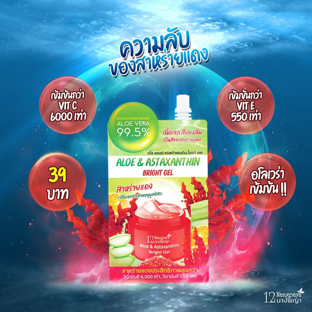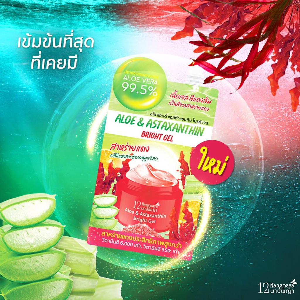 12นางพญา เจลว่านหางจระเข้ & สาหร่ายแดง 12นางพญา กระจ่างใส ลดรอยสิว สารสกัด 99.5% (1 กล่อง / 4 ซอง)