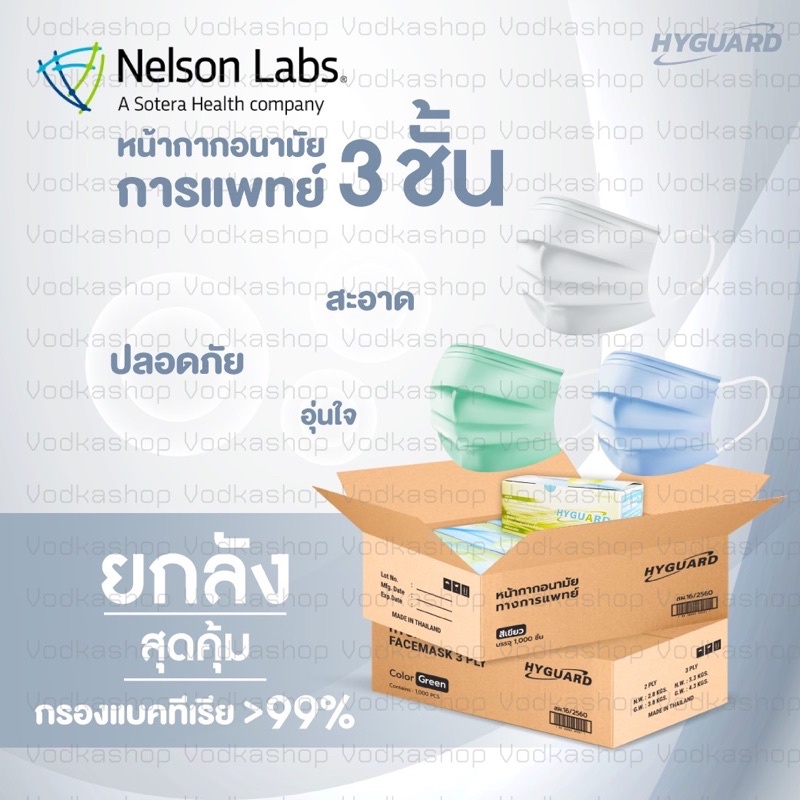 ยกลัง HYGUARD mask แมส pm2.5 หน้ากากอนามัยทางการแพทย์ 3 ชั้น ผู้ใหญ่ ป้องกันฝุ่นPM2.5 1,000ชิ้น