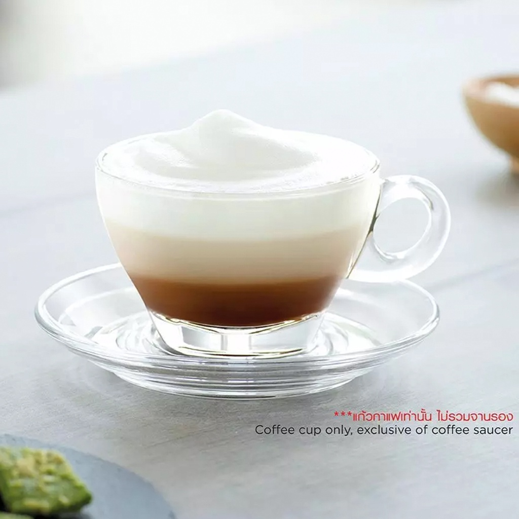 JJGLASS - (Ocean) P02443 Latte (260 ml) + P02471 - เซตคู่แก้วพร้อมจานรอง แก้วกาแฟลาเต้ ขนาด 9 ออนซ์ + จานรอง 5 3/4 นิ้ว