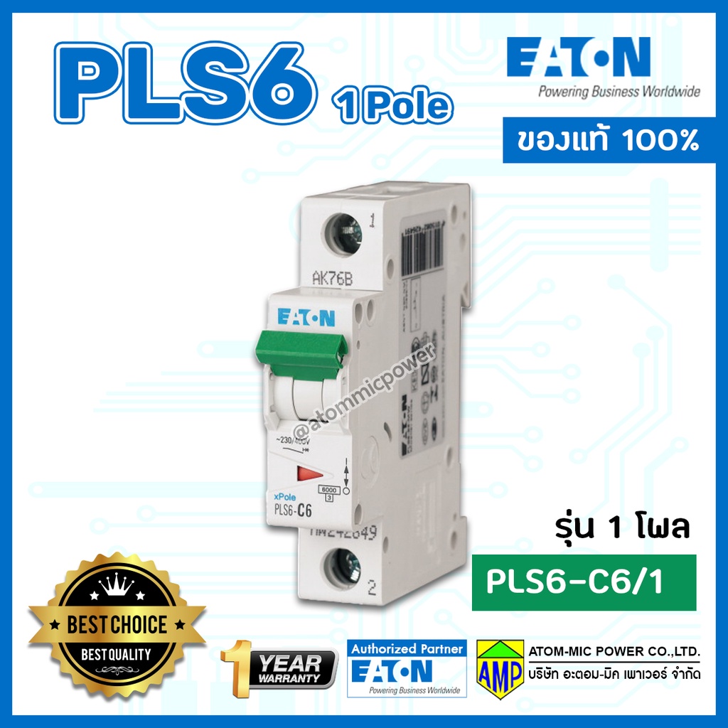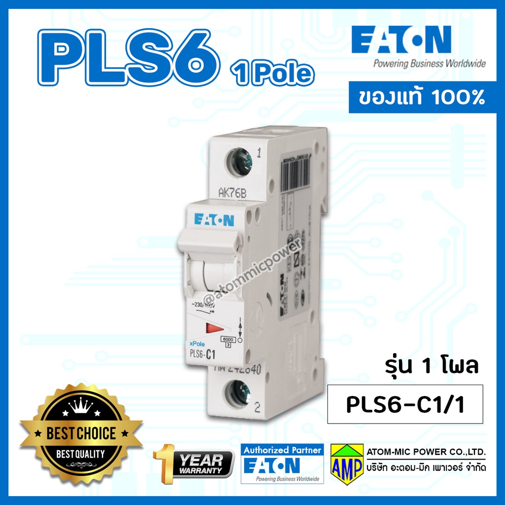 EATON เซอร์กิตเบรกเกอร์ลูกย่อย PLS6 รุ่น 1โพล EATON Miniature Circuit Breaker 1Pole