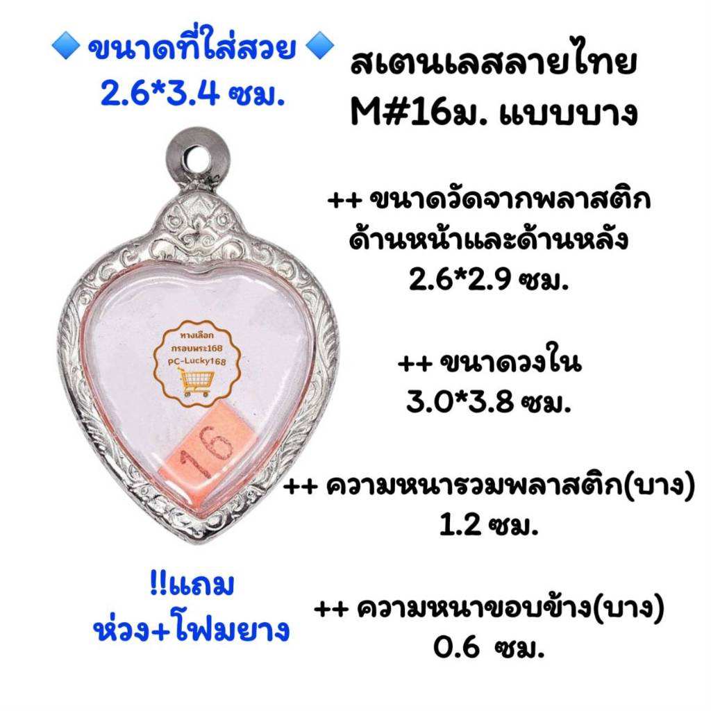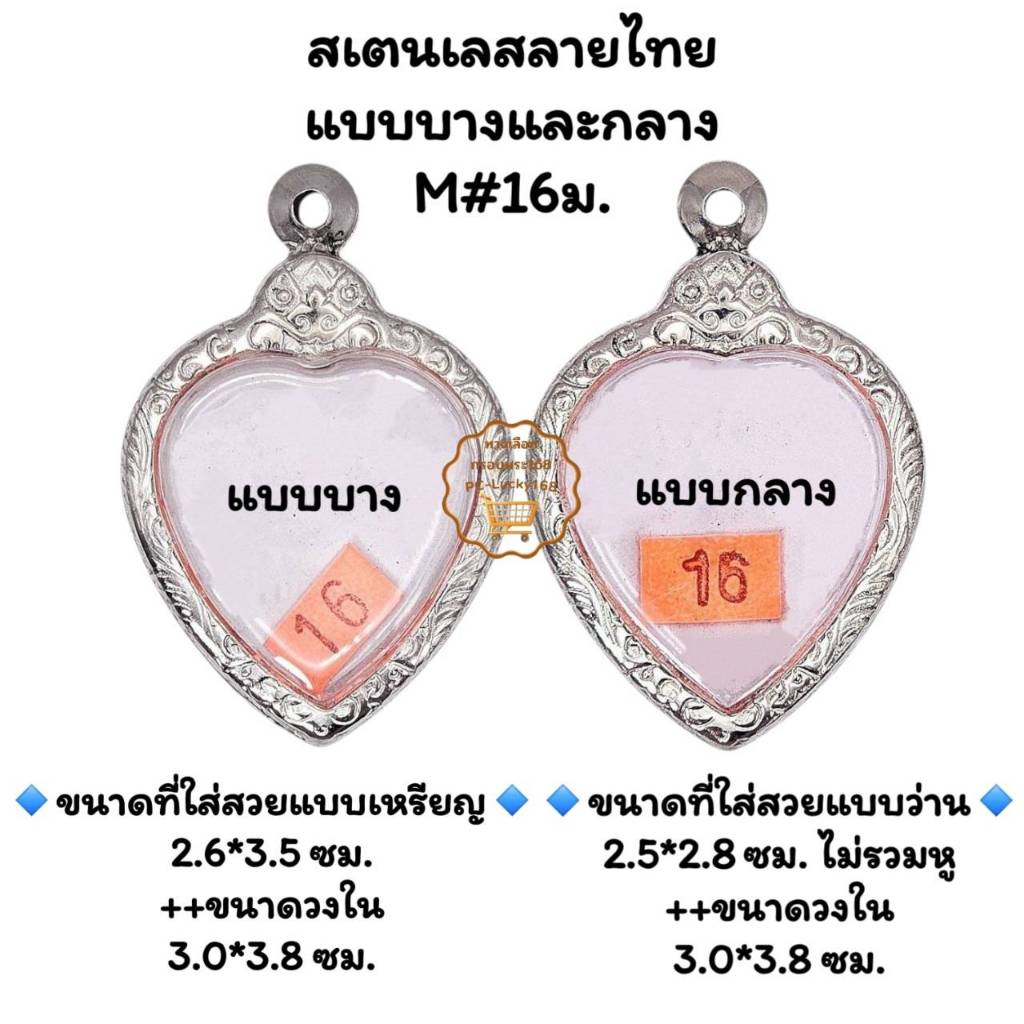 M#16ม. ตลับพระ/กรอบพระสเตนเลสลายไทยแบบบางและกลาง สำหรับเหรียญเข้ารูปทรงหัวใจ ลพ.เกษม หรือใกล้เคียง