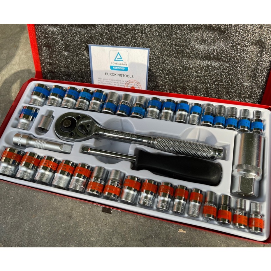 ชุดบล็อก 6เหลี่ยม ขนาด1/4"และ3/8" Euro king tools 40ชิ้น/ชุด ของแท้100% บล็อก ลูกบล็อก