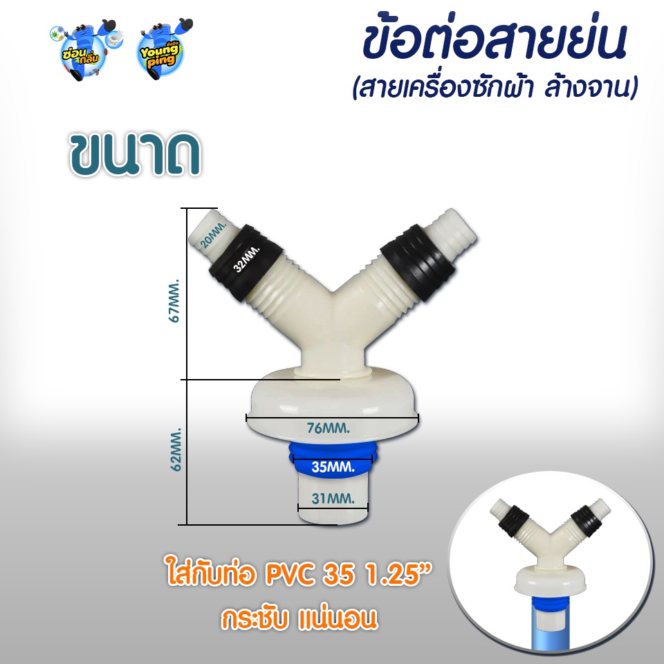 YoungPing ข้อต่อสายย่น 2 ทาง(เครื่องซักผ้า ล้างจาน) ใช้งานกับท่อ PVC 35 1.25" (ขนาดอื่นถามเพิ่มเติม)