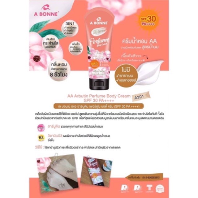 **New* A BONNE Perfume Body Cream SPF 30 PA++++ เอ บอนเน่ เพอร์ฟูม บอดี้ ครีม 200 มล.