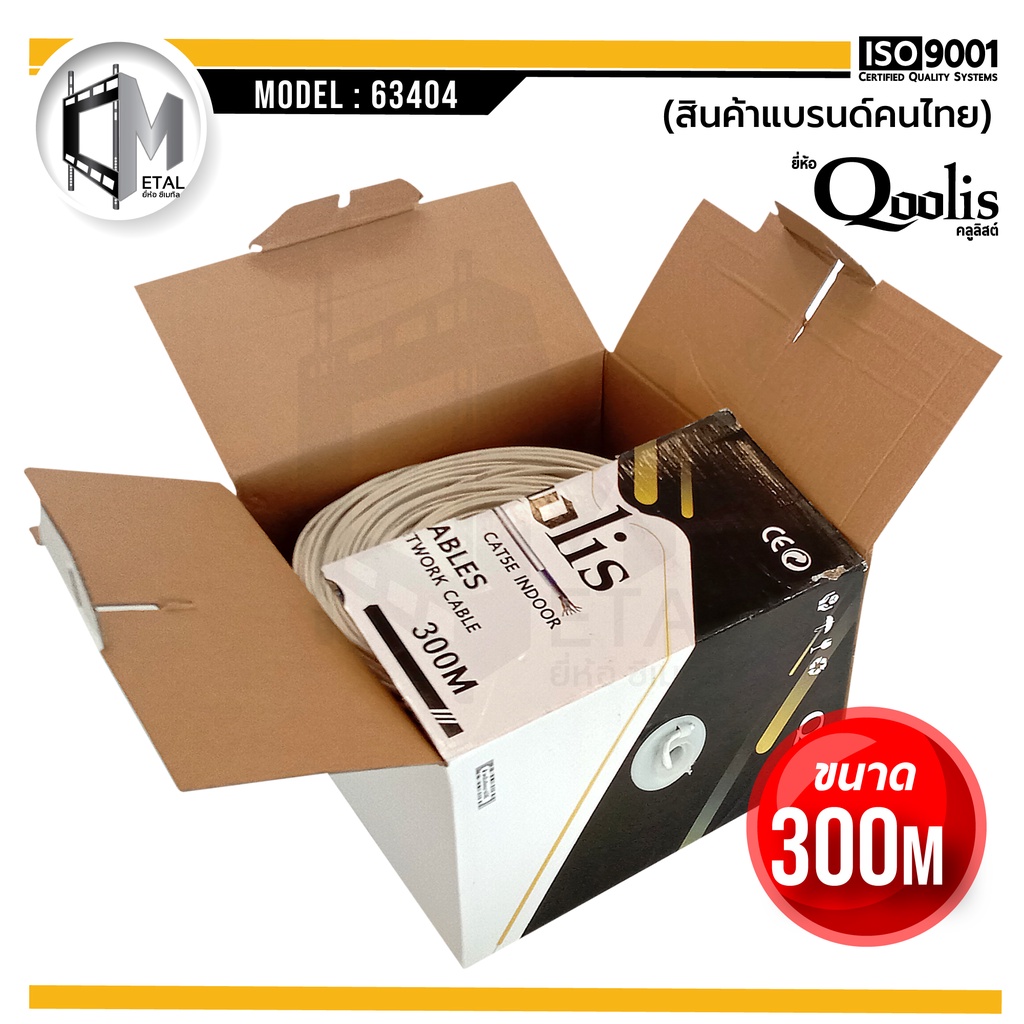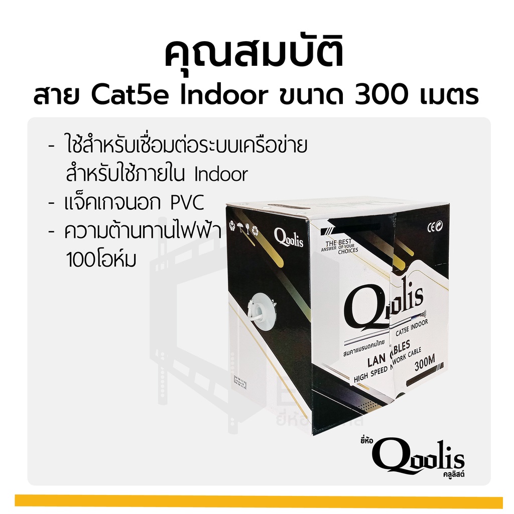 CAT5e Indoor 300m / กล่อง รหัส 63404 ยี่ห้อ Qoolis CAT5e 300M x 1 กล่อง เดินภายใน เหมาะกับงานภายในอาคาร