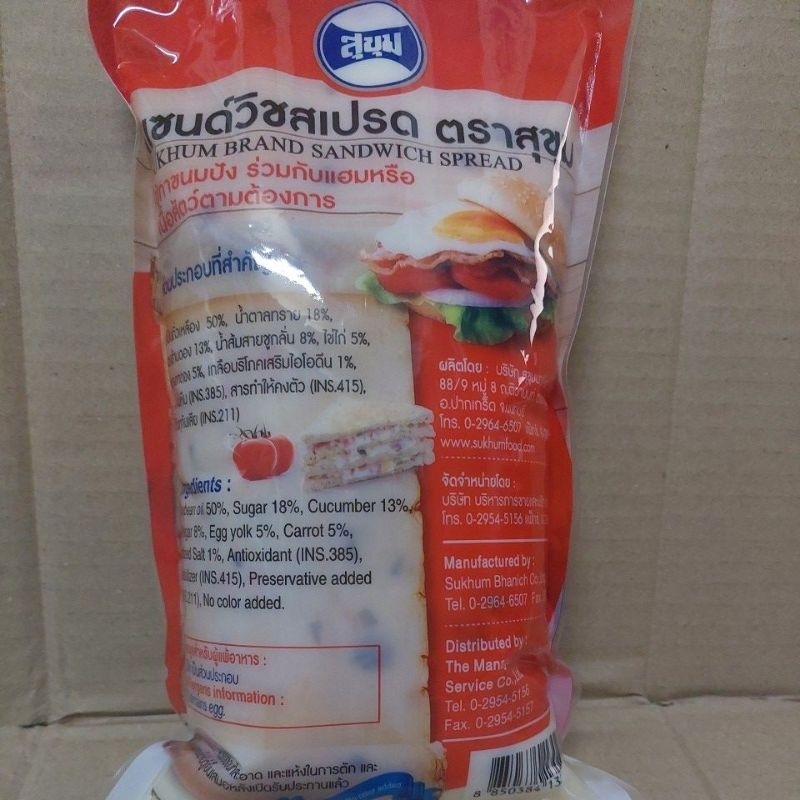 ยกลัง12ถุง แซนด์วิชสเปรซ ตราสุขุม ขนาดถุง 1 กก. (ยกลัง12กก)