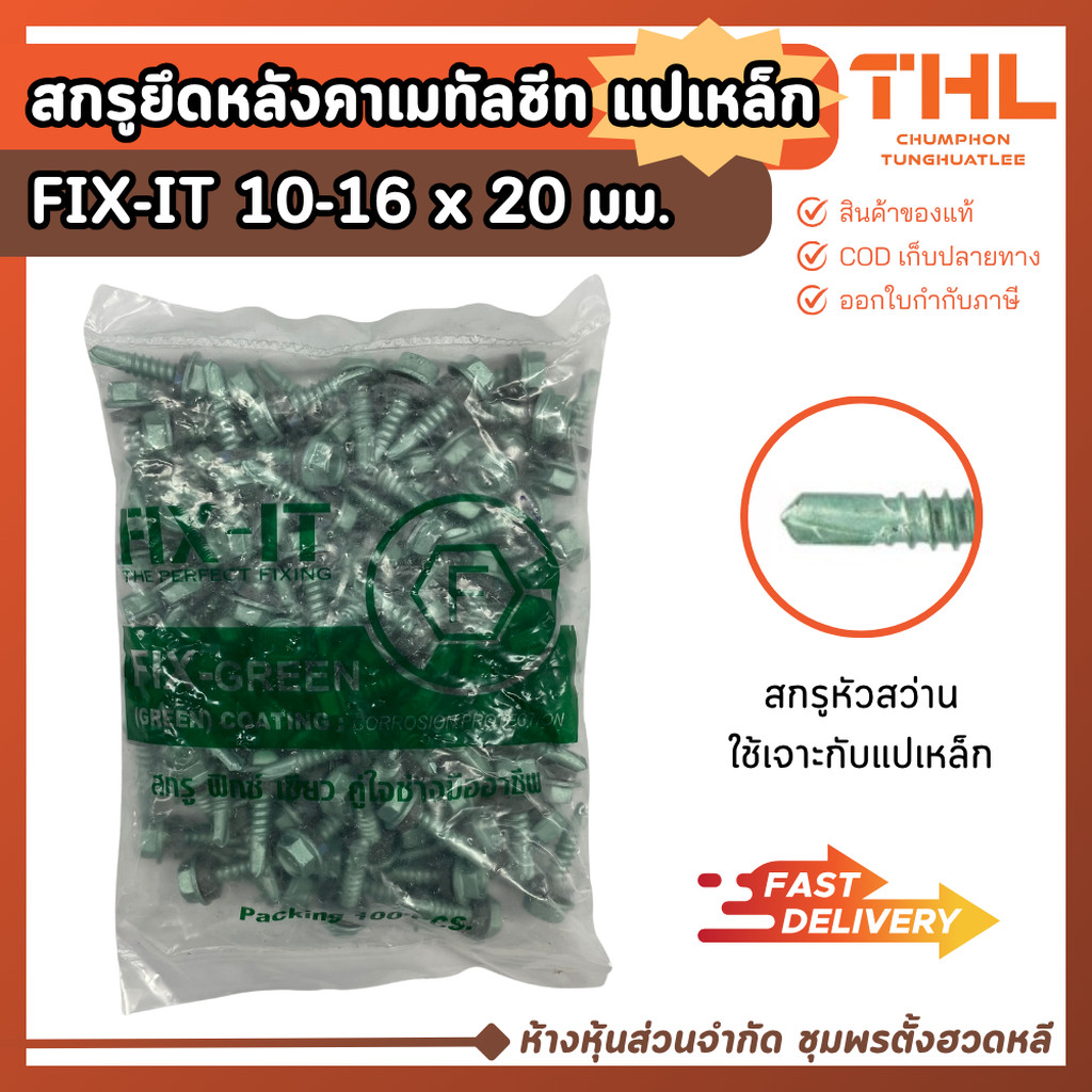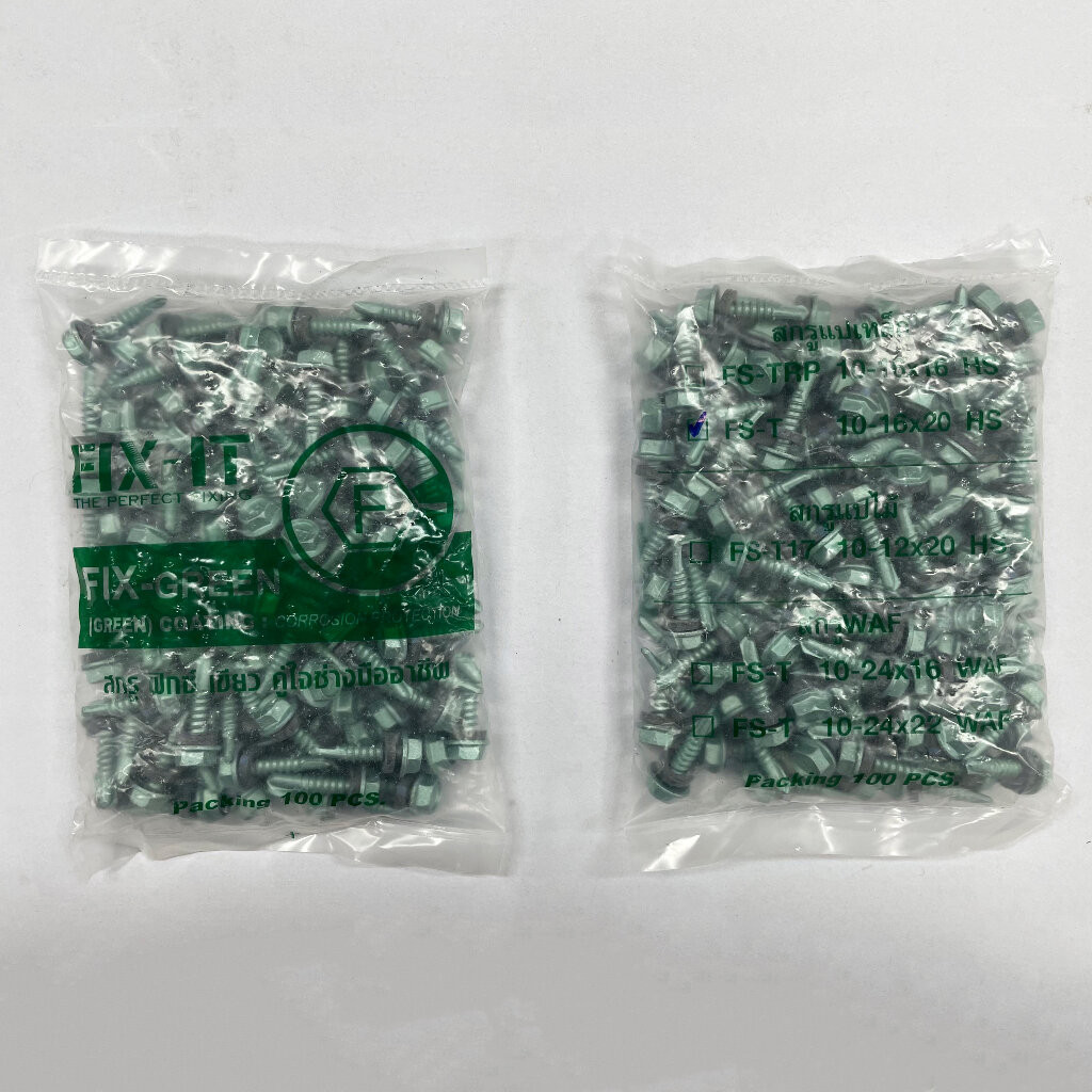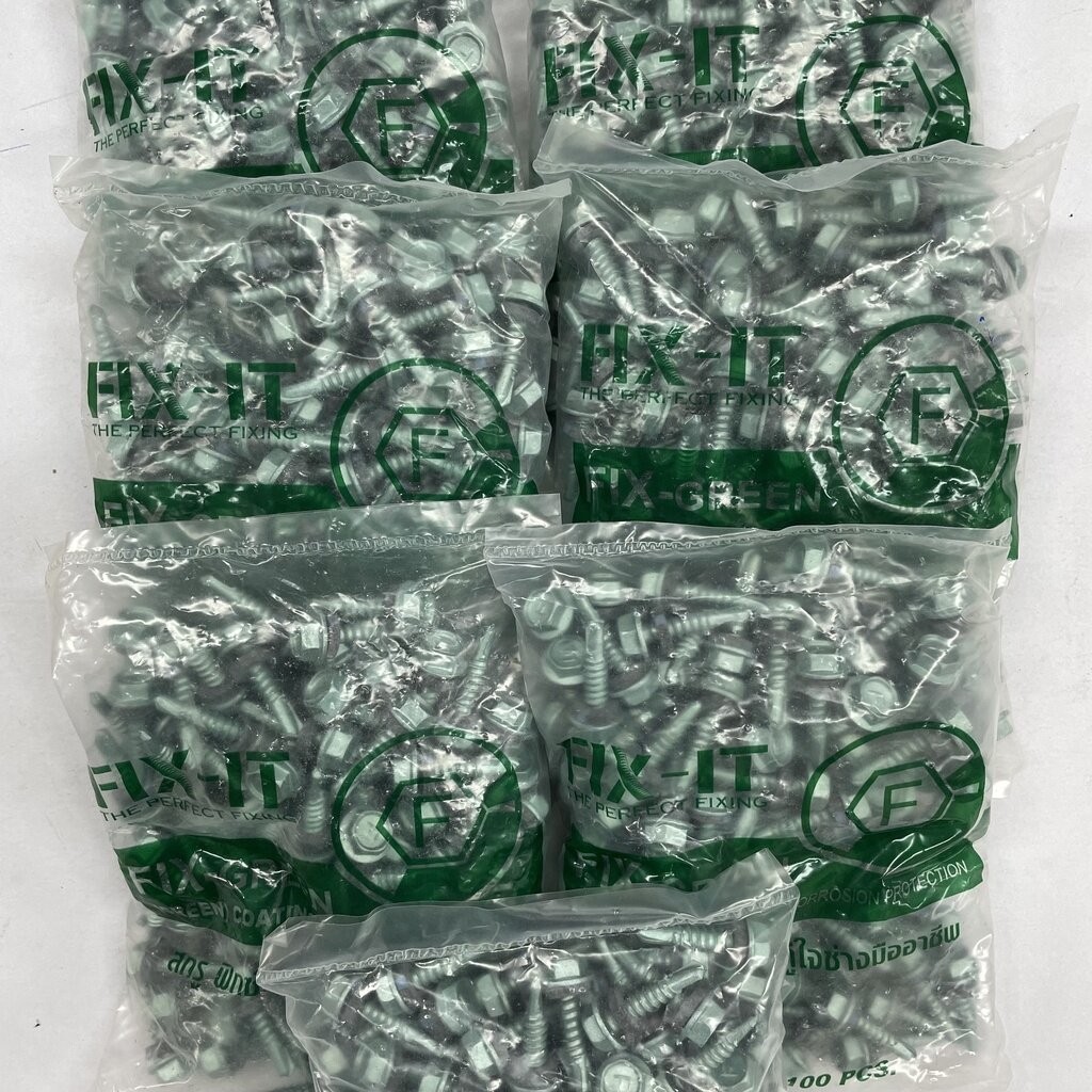 สกรูปลายสว่าน สกรูยึดหลังคาเมทัลชีท แปเหล็ก 10-16 x 20 มม. (20 / 100ตัว) FIX-IT GREEN Fixing Screws