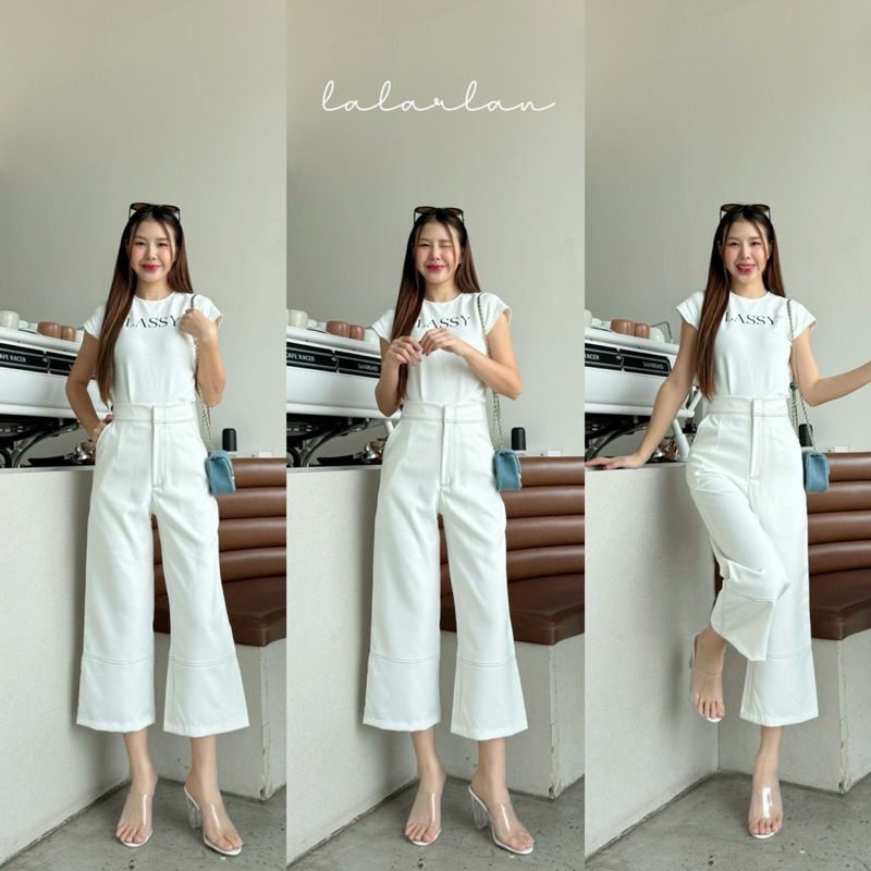 TWO TONE PANTS กางเกงขายาวทรงกระบอกดีเทลช่วงตะเข็บเย็บ