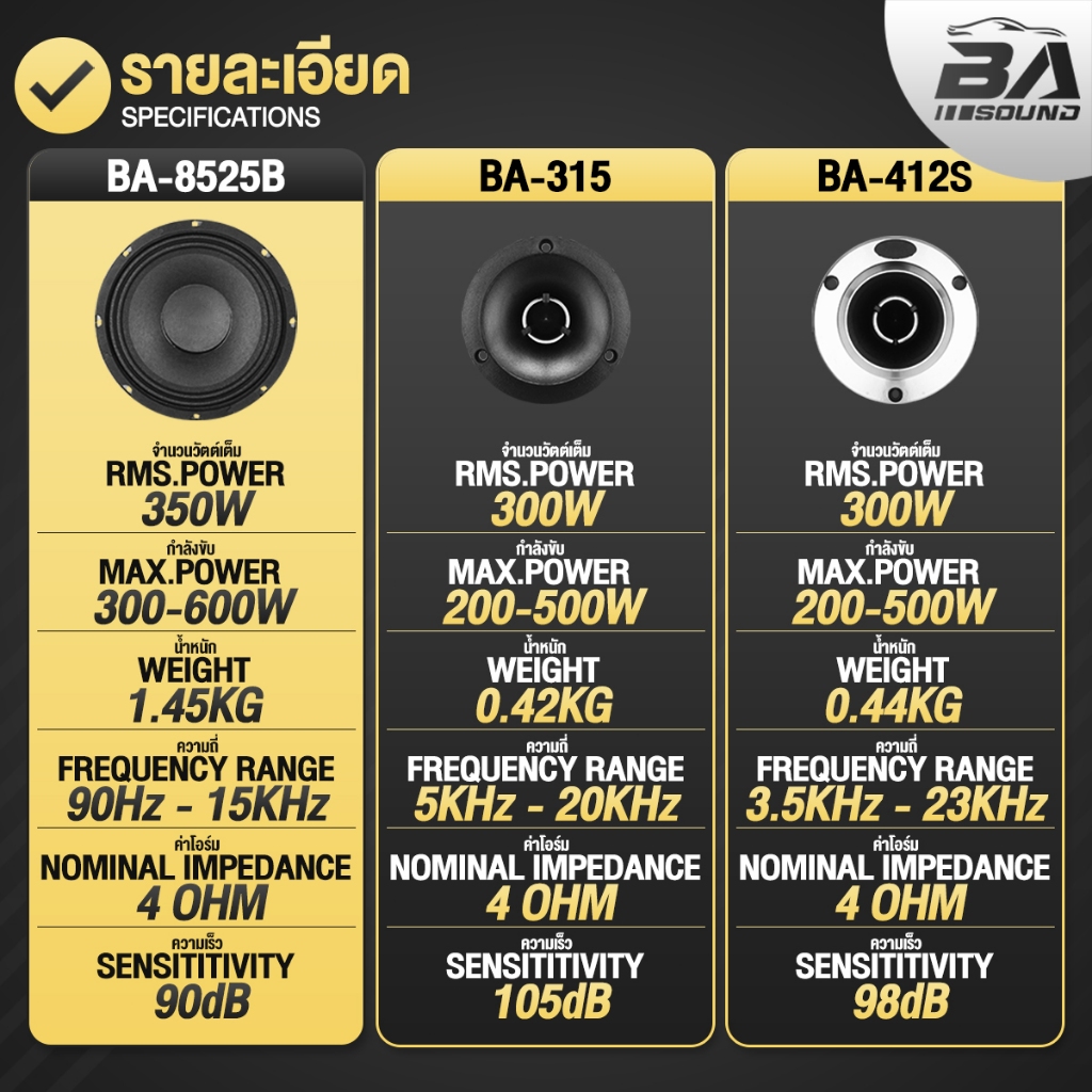 BA SOUND ชุดลำโพงลดราคาพิเศษ 4 ชิ้น ลำโพงเสียงกลาง 8 นิ้ว แถม ทวิตเตอร์ แหลมจาน 4 นิ้ว ชุดลำโพงบ้าน ชุดลำโพงติดรถยนต์