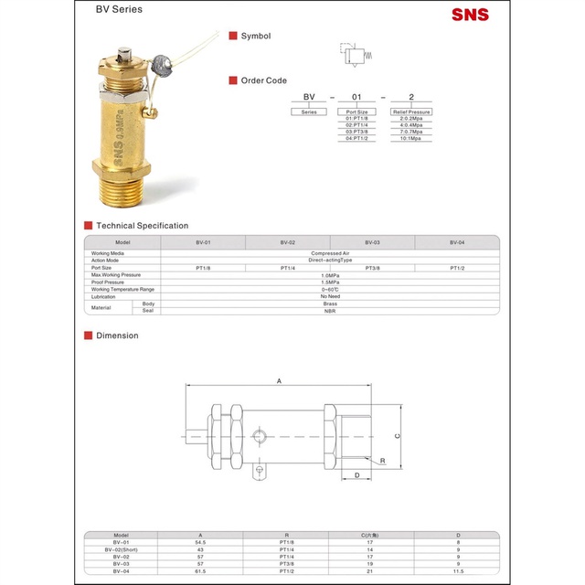 BV เซพตี้วาล์ว เป็นวาล์วระบาย เซฟตี้วาล์ว ขนาด 2-4 หุน - Relief Sefety Valve BV-02-8
