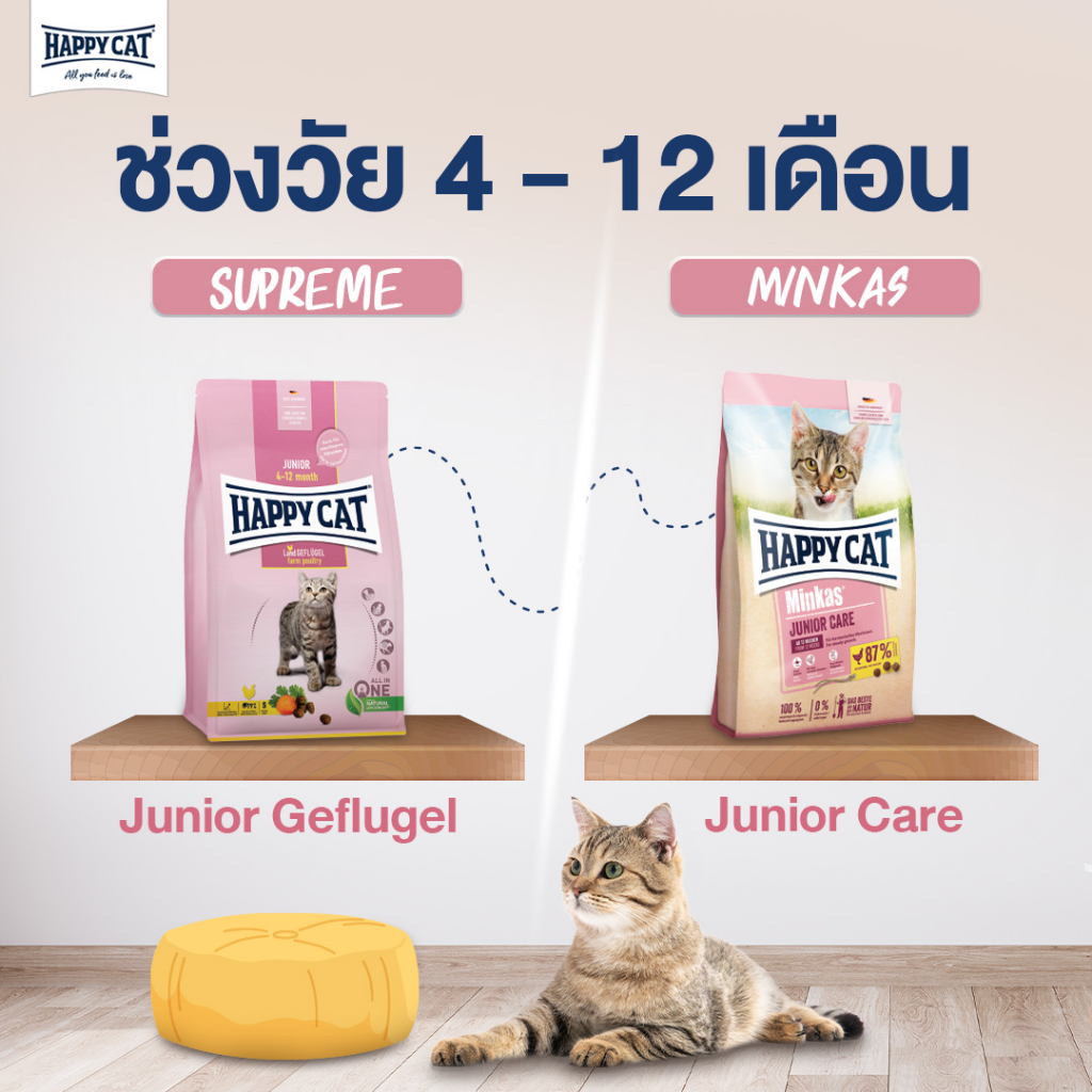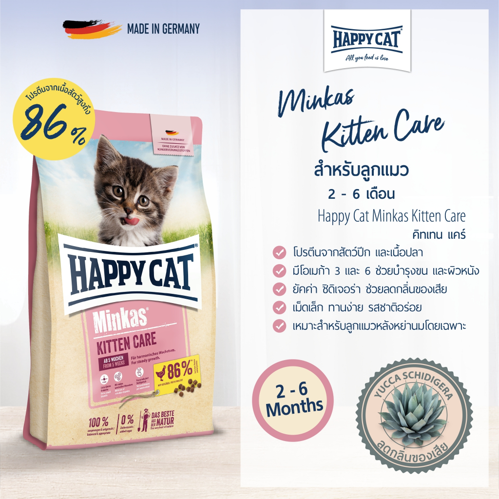 HAPPY CAT Minkas Kitten Care อาหารลูกแมวหลังหย่านม อายุ 2-6 เดือน เนื้อสัตว์ปีกและเนื้อปลา 500 g