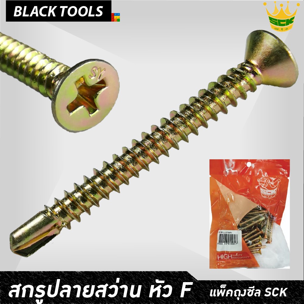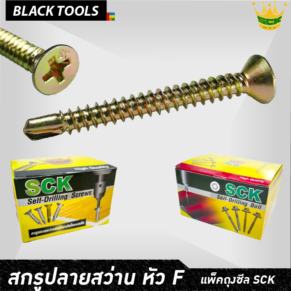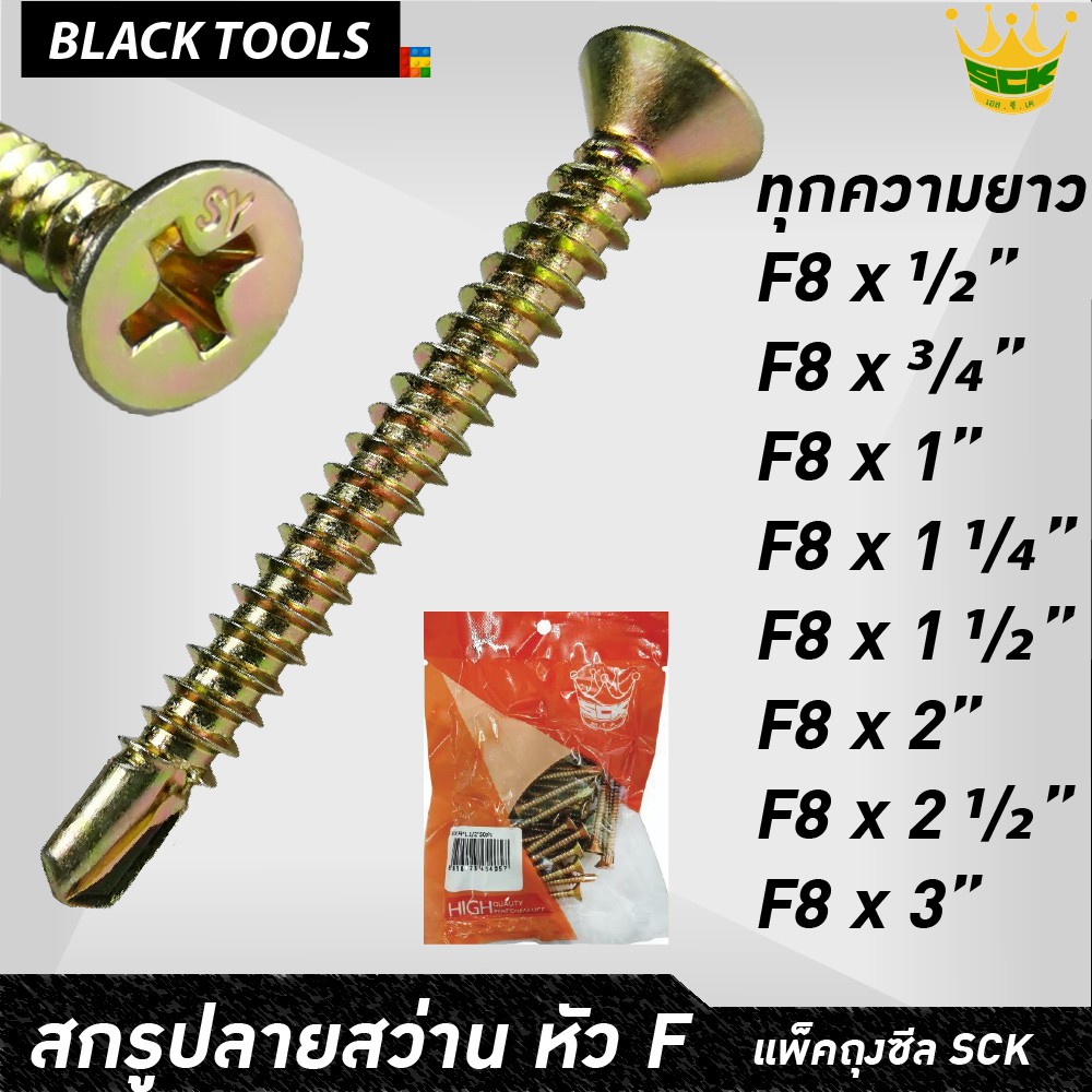 SCK สกรูปลายสว่าน หัว F8 เตเปอร์ ทุกขนาดความยาว เจาะเหล็ก ยึดเหล็กไม่ต้องเจาะนำ [บรรจุแพ็ค] BLACKTOOLS