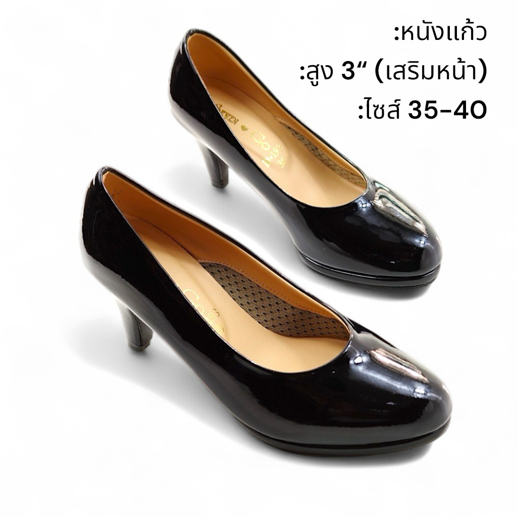 รองเท้าคัทชู ส้น3นิ้ว หัวมนเสริมหน้าทรงสวย เหมาะกับเท้าเรียว