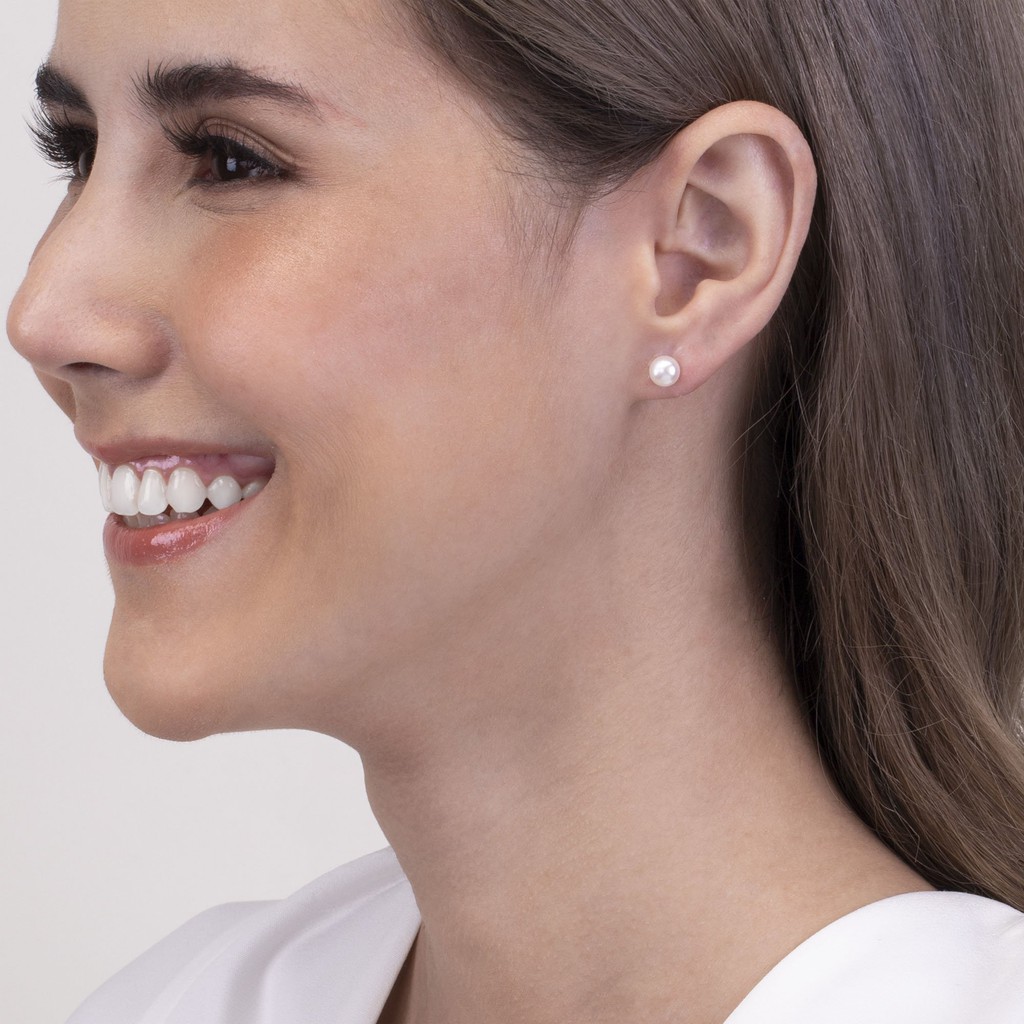 Merii ต่างหูเงินแท้ 925 ชุบโรเดียม ประดับไข่มุกน้ำจืด ขนาด 6 มม. ดีไซน์คลาสสิก