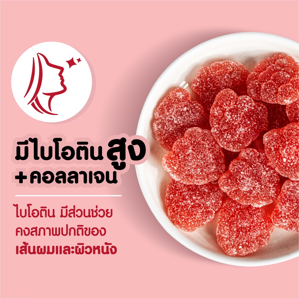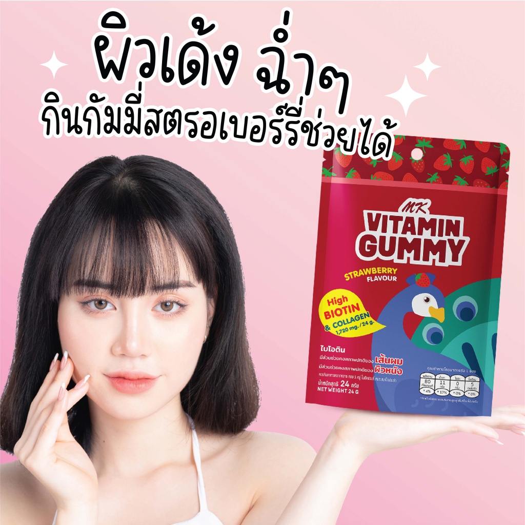 วิตามินกัมมี่ เอ็มเค MK Vitamin Gummy สตรอเบอร์รี่ 1 ซอง ขนม เยลลี่ อร่อย มีไบโอติน คอลลาเจน บำรุงเส้นผมและผิวหนัง