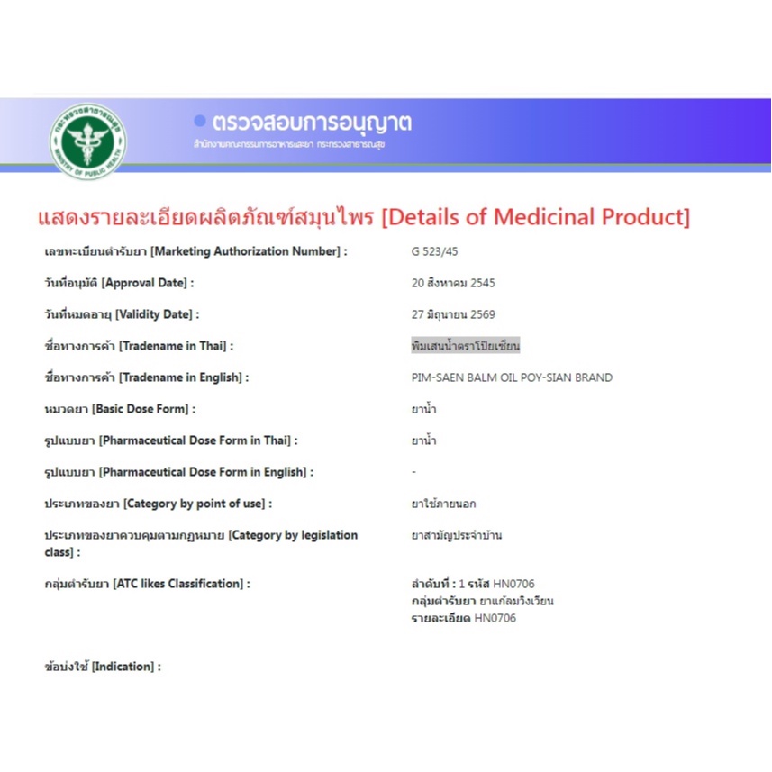 POY-SIAN PoySian พิมเสนน้ำ ตรา โป๊ยเซียน แบบ ลูกกลิ้ง 5 ซีซี ใช้ดม ใช้ทา ในหลอดเดียวกัน 1 ขวด 05130