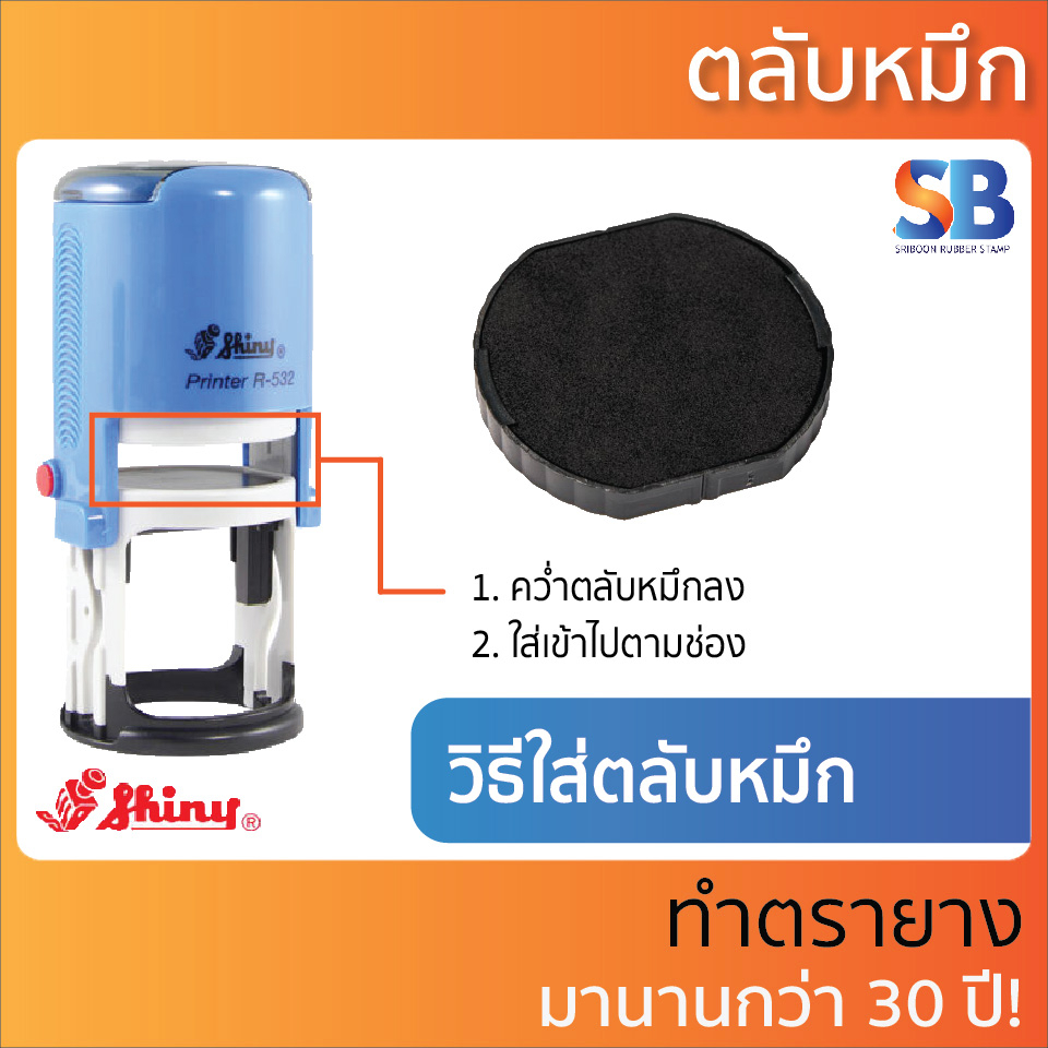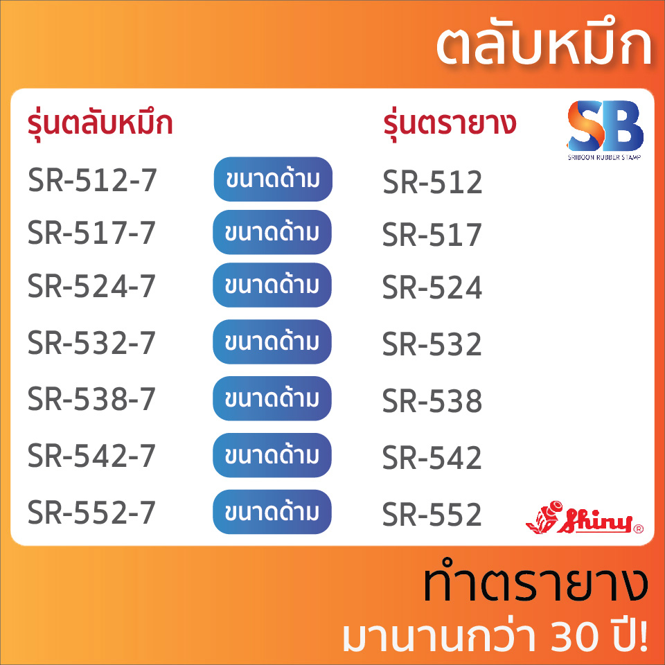 (ตลับหมึก) ตรายางหมึกในตัว Shiny รุ่น R-512, R-517, R-524, R-532, R-538, R-542, R-552, ออกใบกำกับภาษีได้!