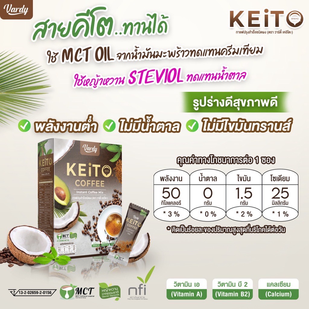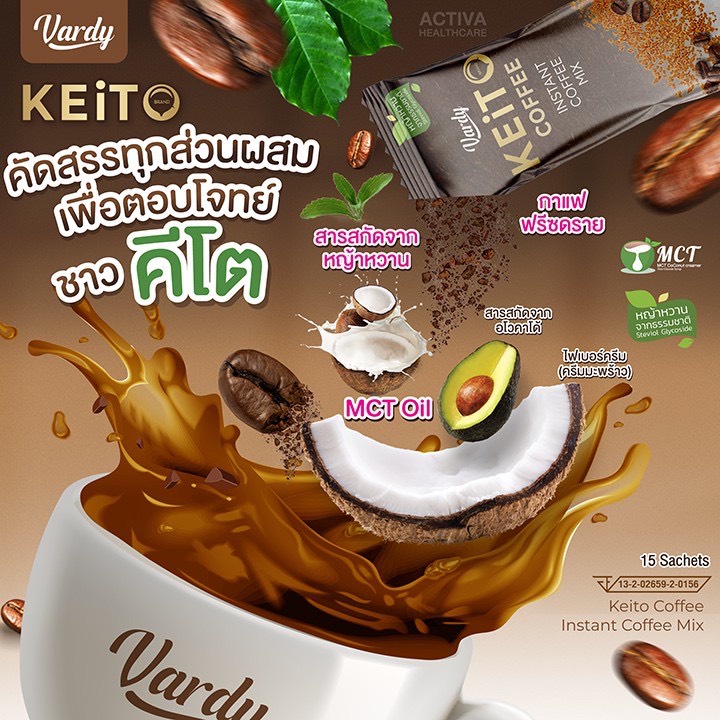 กาแฟคีโต Vardy Keito วาร์ดี้ เคอิโตะ สูตรคีโต กาแฟพลอยชิดจันทร์