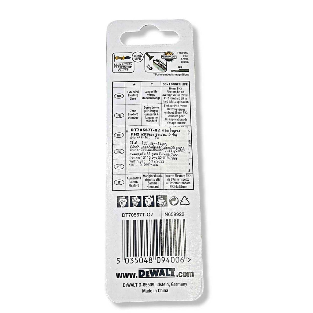 DEWALT รุ่น DT70567T ดอกไขควง แพ็ค 2ชิ้น DEWALT DT70567T EXTREME IMPACT TORSION SCREWDRIVER BIT 85MM