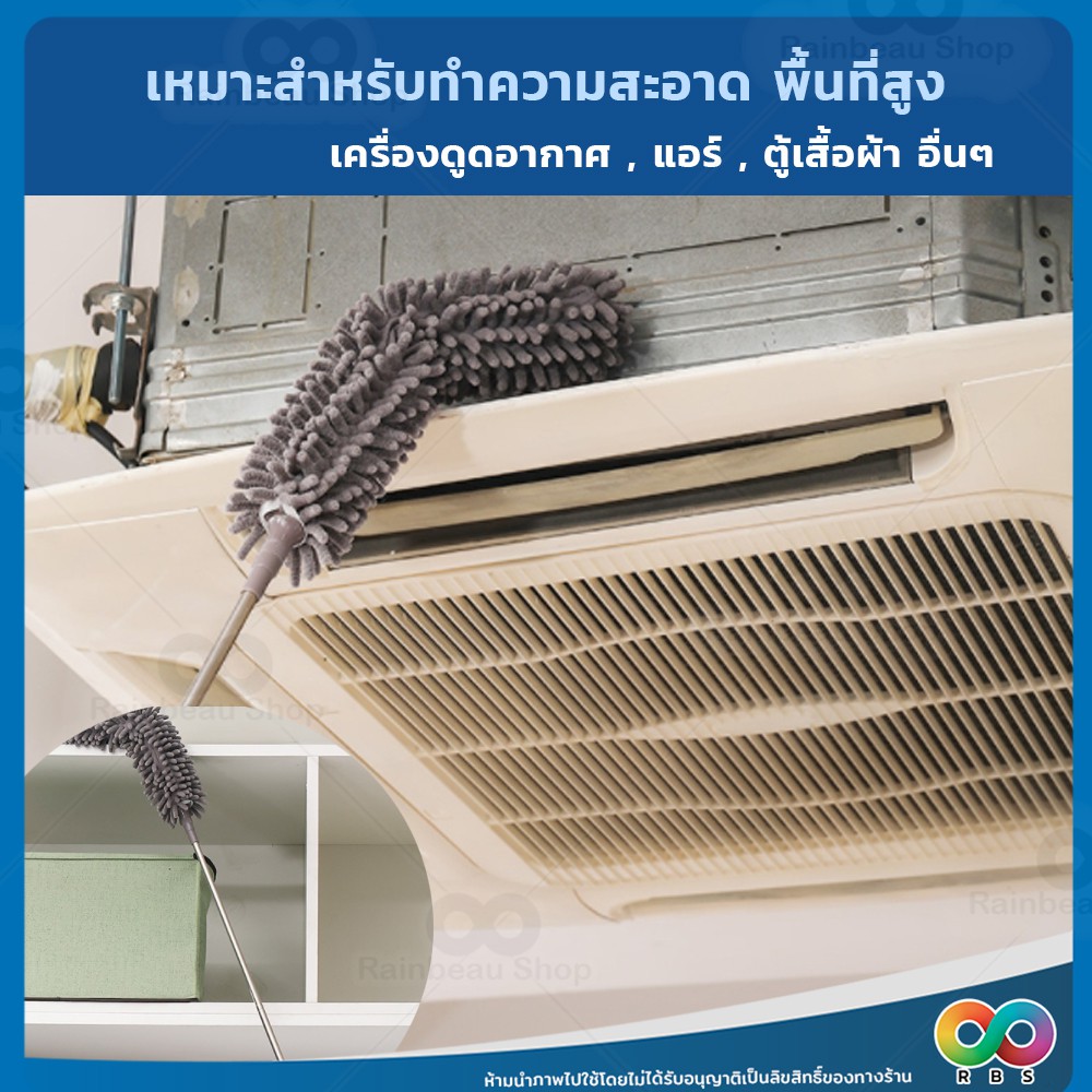 RAINBEAU ไม้ปัดฝุ่น ตัวหนอน ผ้าไมโครไฟเบอร์ ปรับยาวได้ 1.4 ม. และ 2.5 ม. ดักจับฝุ่น99% งอตัวได้