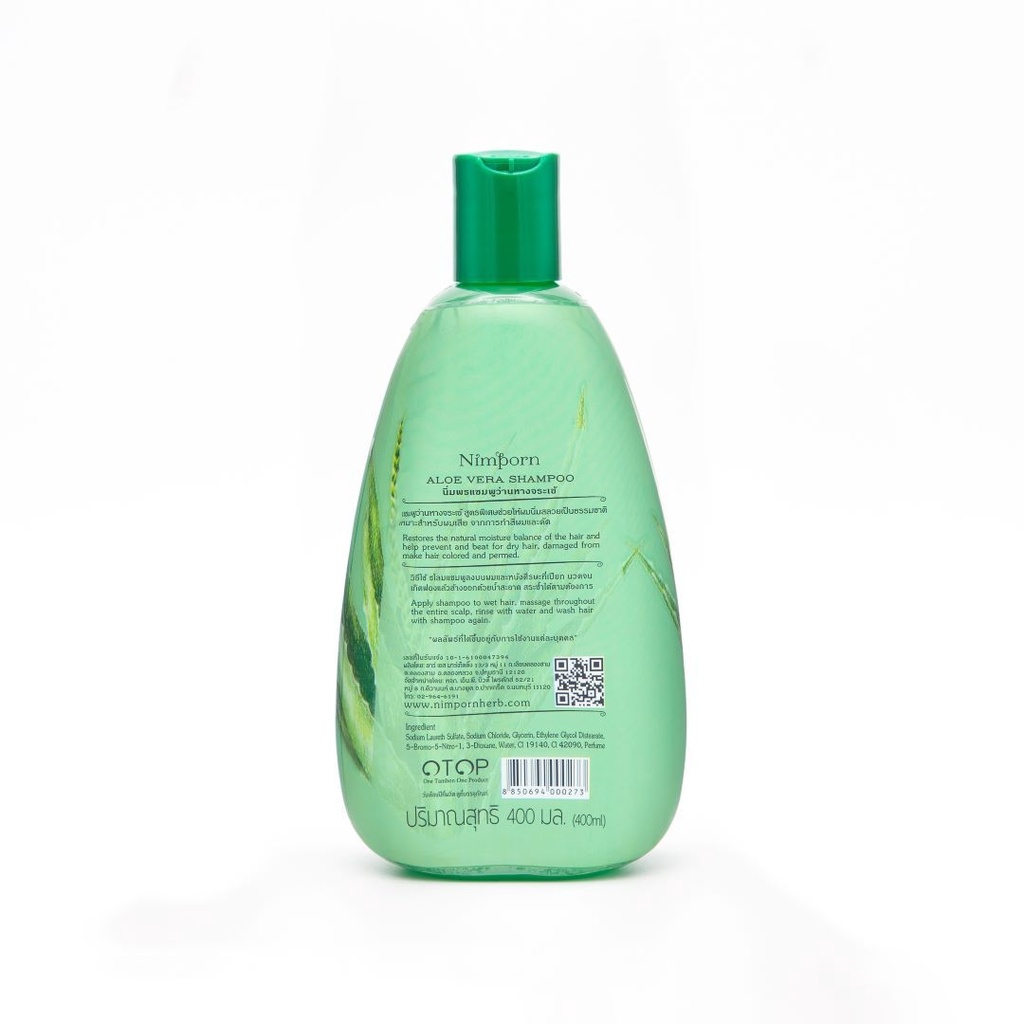 นิ่มพร แชมพูสมุนไพร สูตรว่านหางจระเข้ บำรุงผมแห้งเสียและแตกปลาย จากการโดนความร้อน หรือการทำสี