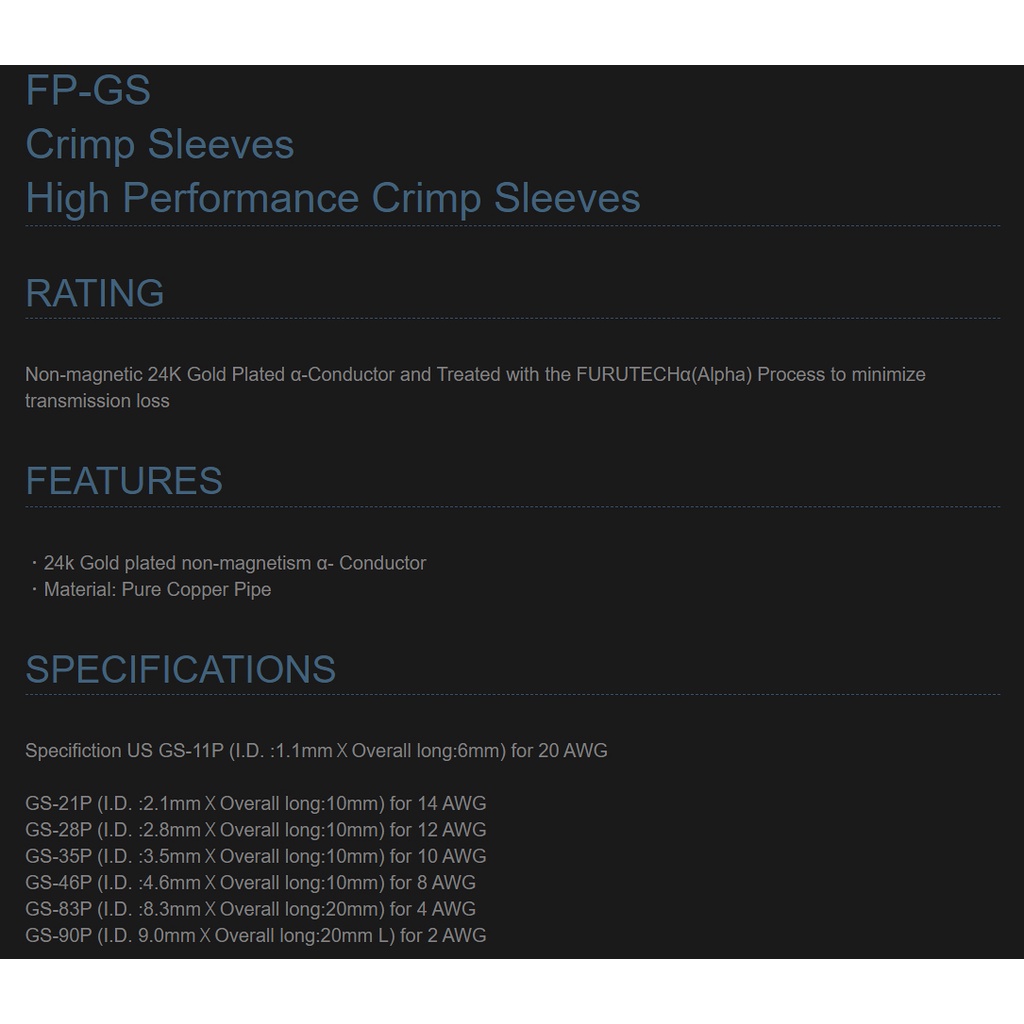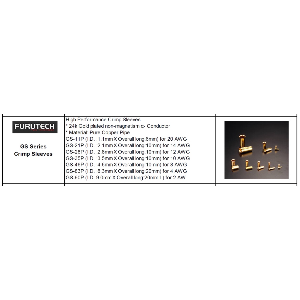 FURUTECH GS-46P(G) 8AWG Crimp Sleeves High Performance Crimp Sleeves audio grade made in japan