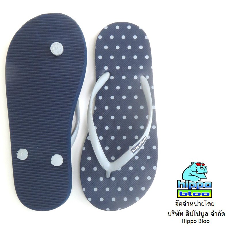 Hippo bloo รองเท้าแตะฮิปโปบูล Navy Gray Dot กรม / จุดเทา สายเล็ก ลายจุด