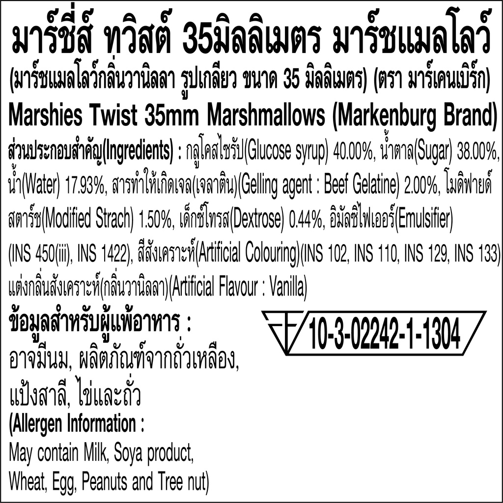 Marshies มาร์ชี่ส์ มาชเมลโล่ เกลียวขนาดกลาง กลิ่นวานิลลา ขนาด 150 กรัม แพ็ค 12 ชิ้น