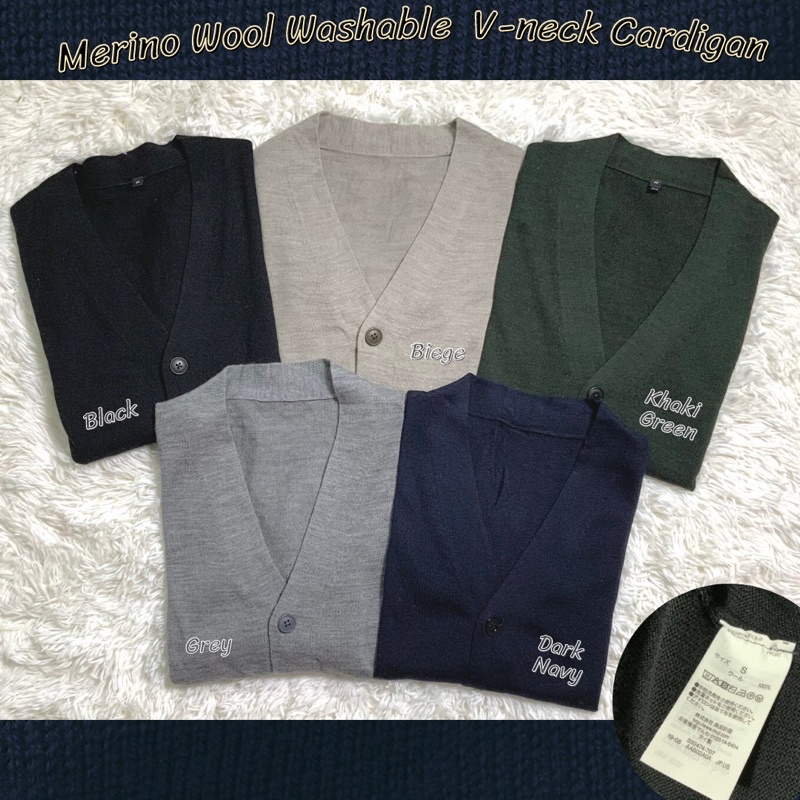 เสื้อไหมพรมผู้ชาย MUJI : Merino wool washable V neck cardigan #11385145887