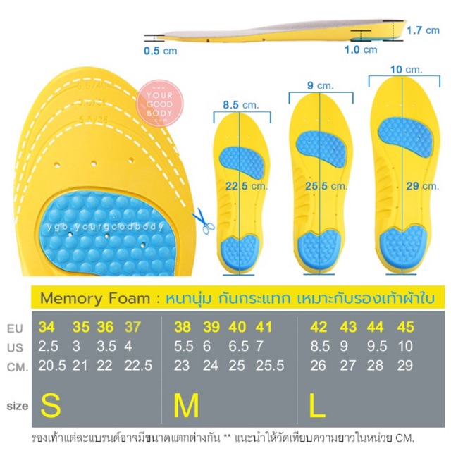 YGB แผ่นรองเท้าเพื่อสุขภาพ (1คู่) แผ่นพื้นรองเท้า ลดแรงกระแทก นุ่มสบาย แผ่นรองเท้ากีฬา คอมแบท