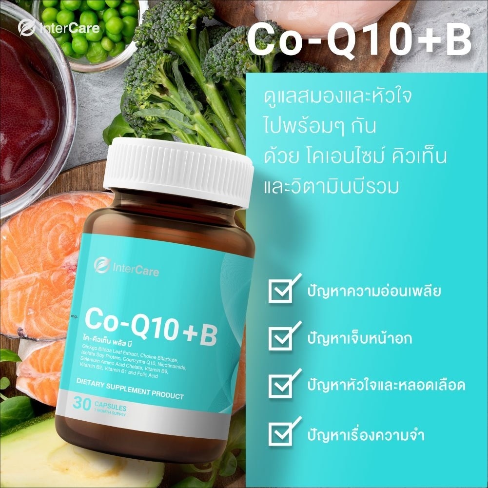 [ เซ็ตสุดคุ้มx3 ] InterCare CoQ10 plus-b สกัดจาก โคคิวเท็นและใบแป๊ะก๊วย บำรุงหัวใจ 3 กระปุก 90 แคปซูล ทานได้ 3เดือน