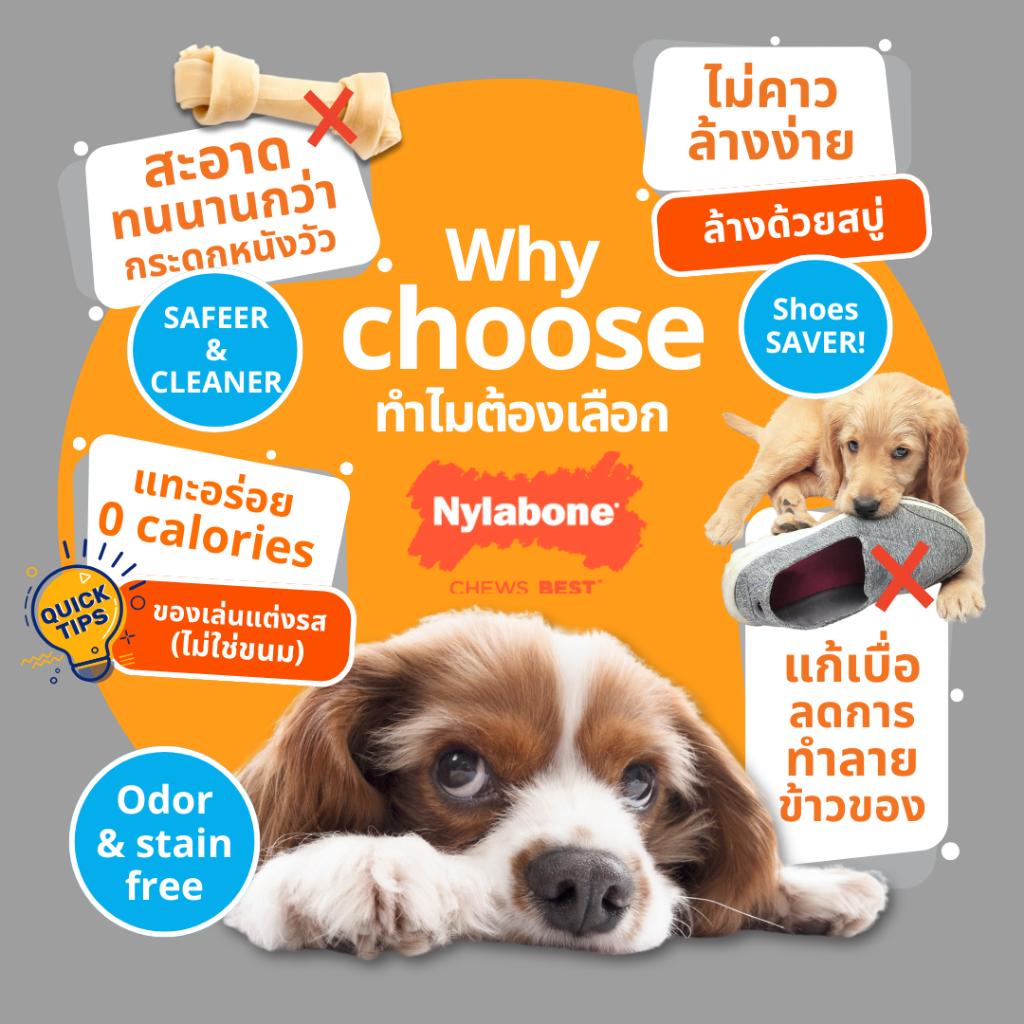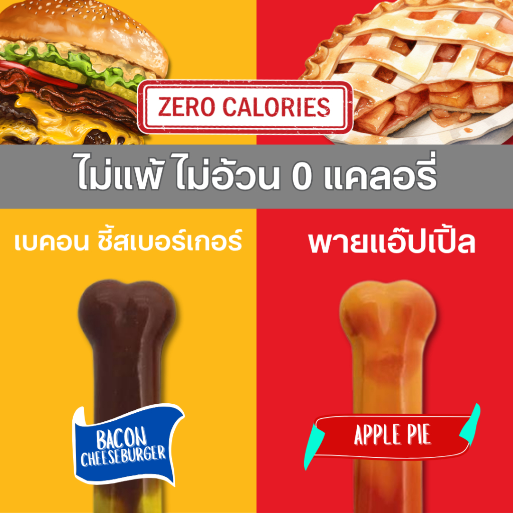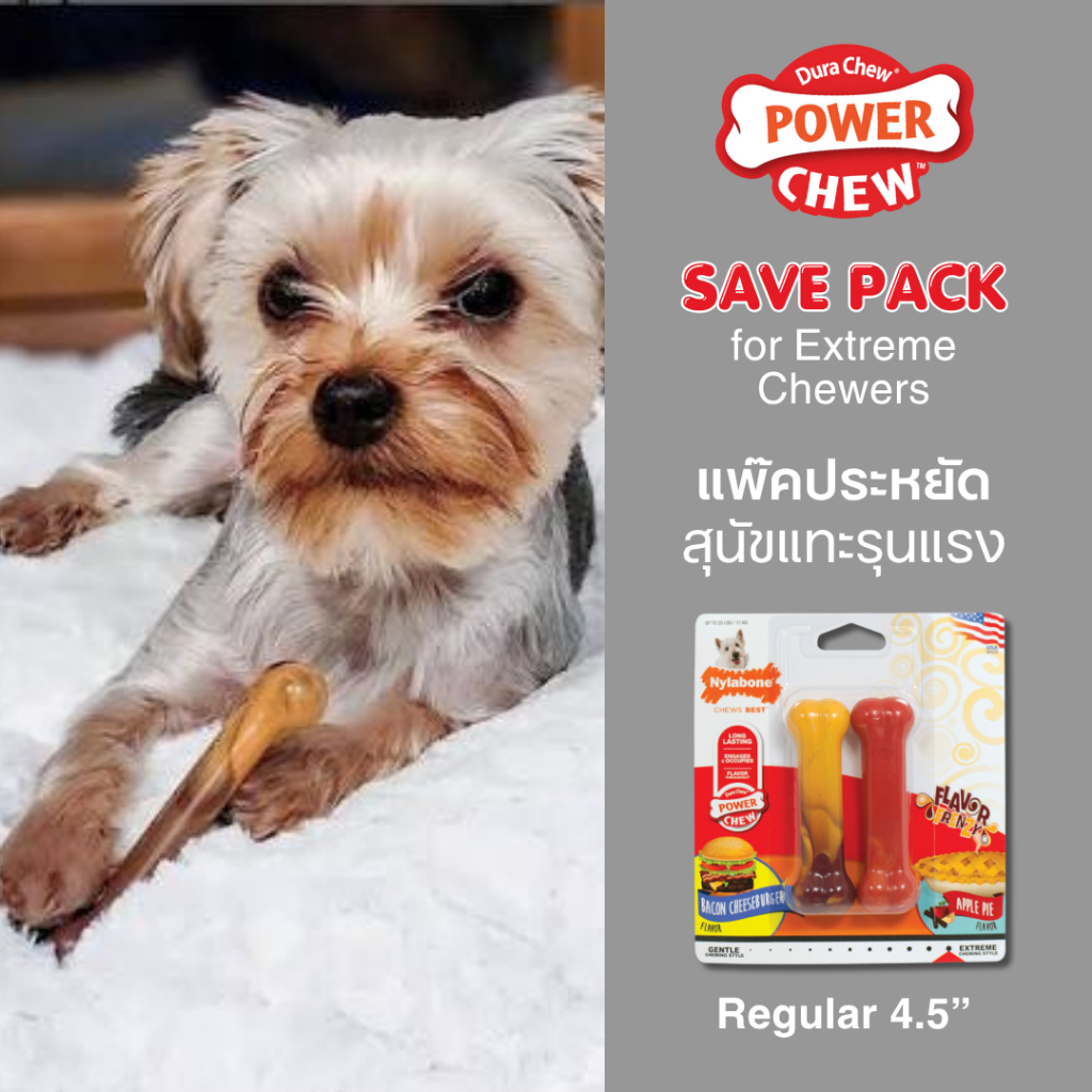 Nylabone Power Chew Bone Bacon Cheeseburger & Apple Pie กระดูกขัดฟัน ไร้สารพิษลดเครียดสุนัขแทะรุนแรง