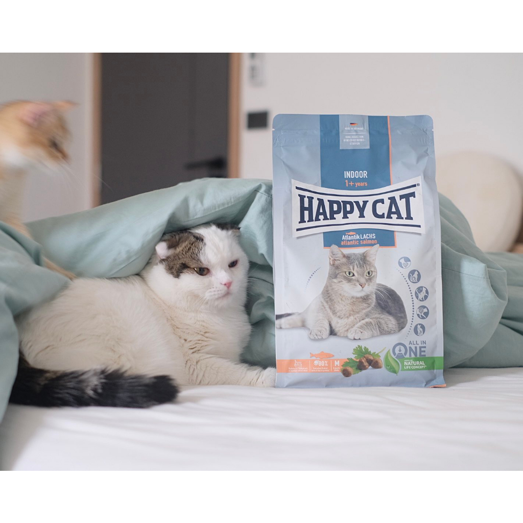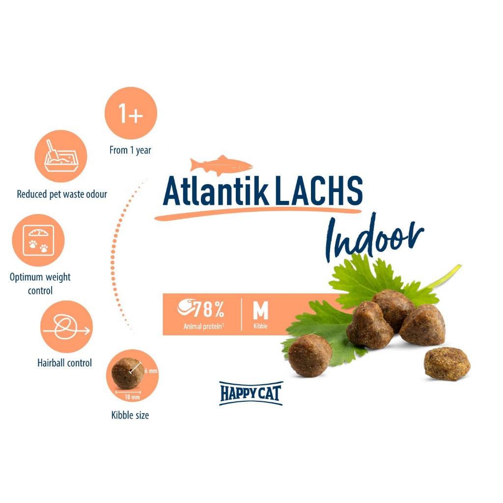 HAPPY CAT Supreme Indoor Atlantik Lachs อาหารแมวโตเลี้ยงในบ้าน สูตรเนื้อสัตว์ปีกและปลาแซลมอน 300 g