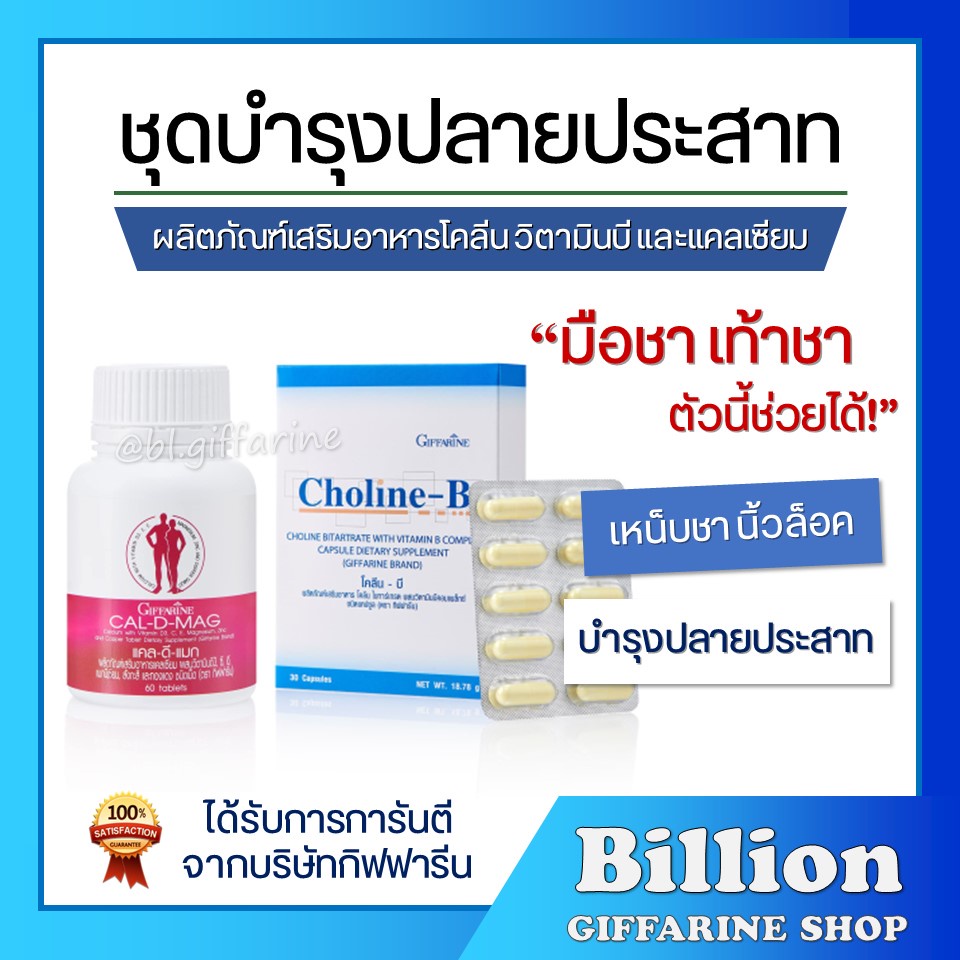 วิตามินบำรุงปลายประสาท กิฟฟารีน (แคลเซียม 400 มก. / โคลีนบี) เหน็บชา มือชา นิ้วล็อค