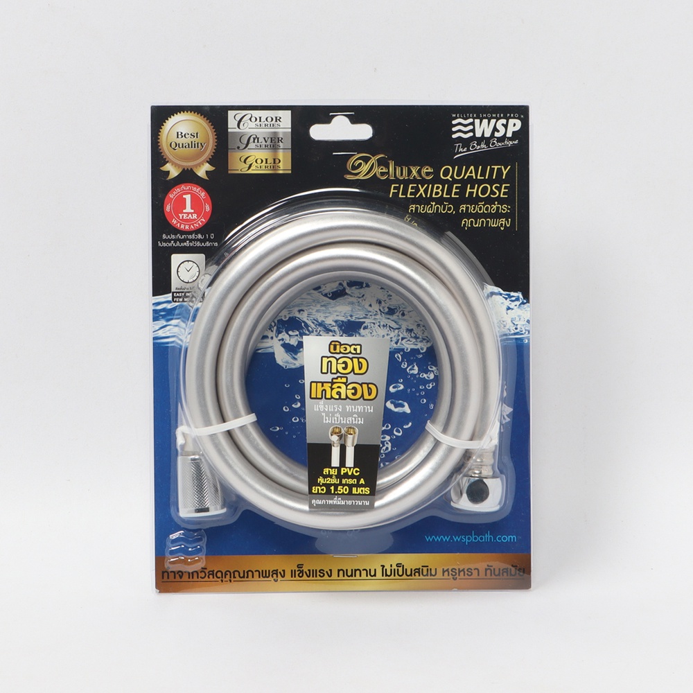 WSP สายฝักบัว สายฉีดชำระสแตนเลส ล็อค 2 ชั้น สายยาว 1.5 เมตร รุ่น SPD-801SV (สีเงิน)