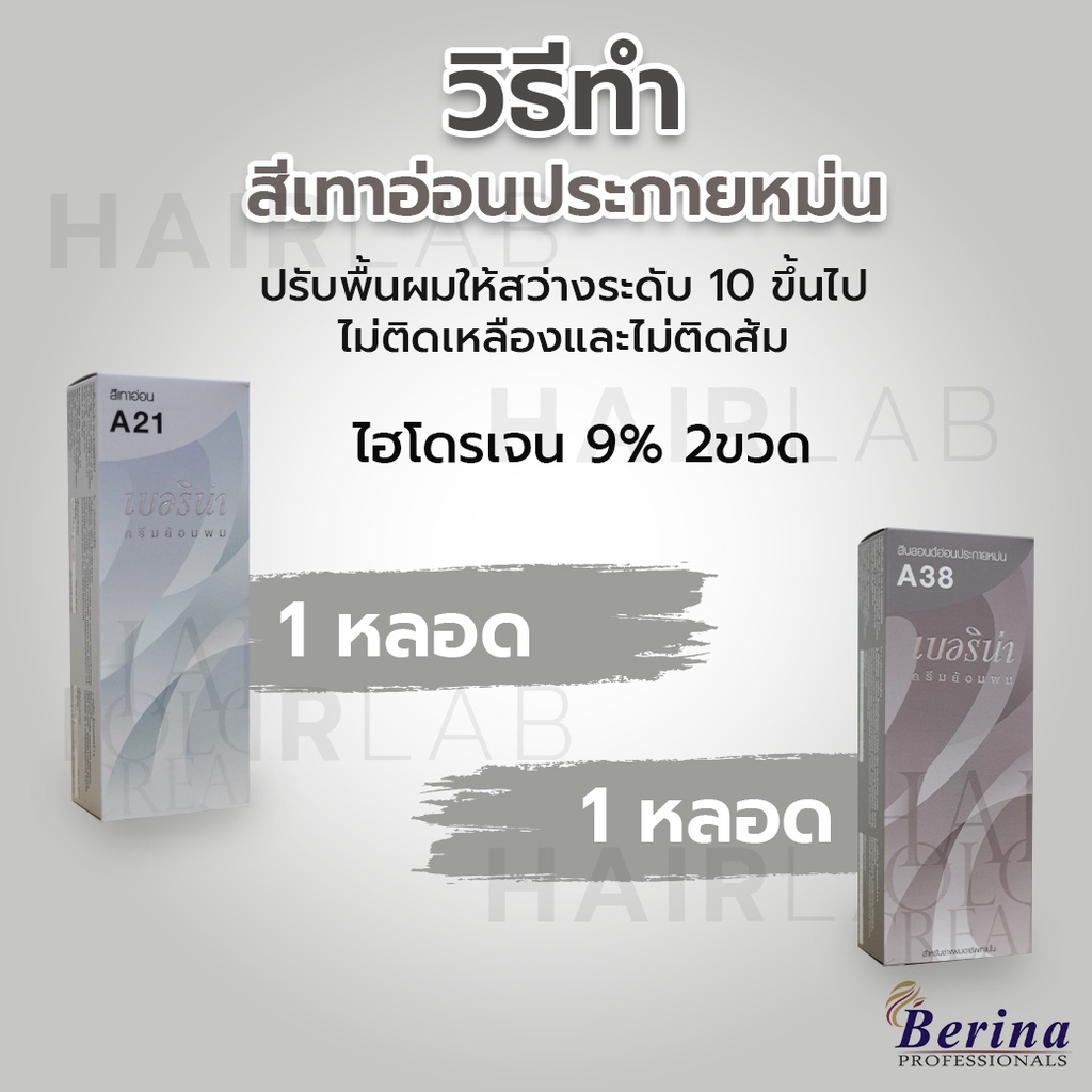 พร้อมส่ง เซตสีผมเบอริน่า Berina Set A21+A38 สีเทาอ่อนประกายหม่น สีผมเบอริน่า สีย้อมผม ครีมย้อมผม