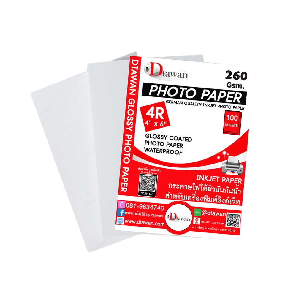 DTawan กระดาษโฟโต้ผิวมัน 4R 4x6 นิ้ว 260g.100แผ่น Professional color paper กระดาษพิมพ์ภาพ คุณภาพสูง เคลือบ Resin Coated