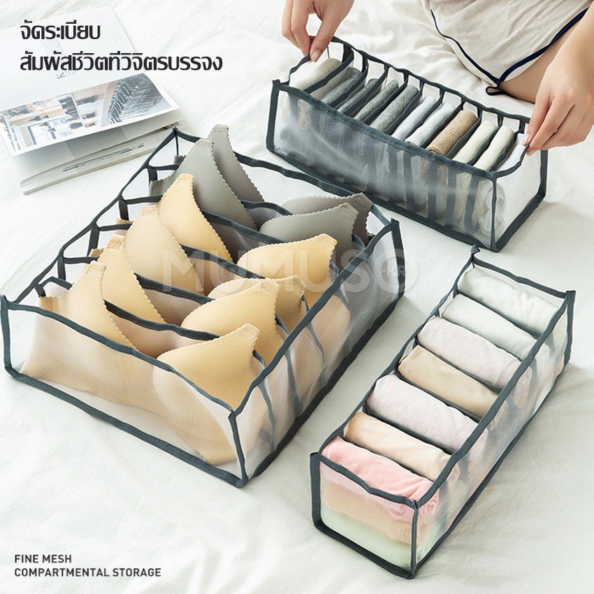 softkiss กล่อองเก็บชุดชั้นใน สำหรับถุงเท้าแยกชุดชั้นใน กางเกงใน ถุงเท้า กล่องจัดระเบียบชุดชั้นใน แบบพกพา ที่เก็บเเบบช่อง