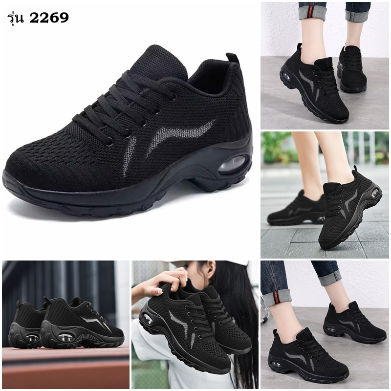 รองเท้าผ้าใบผู้หญิงสีดำล้วน รองเท้าเพื่อสุขภาพ แบรนด์ ALI&BOY,RUIDENG1,YGY,A111,2269 ไซส์ 36-43