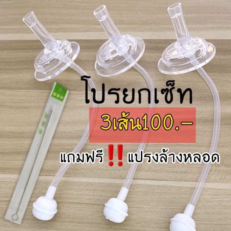 หลอดหัดดื่ม เลิกจุกเลิกเต้า 3 เส้น 100 แถมแปรงล้างหลอด จุกนม มีระบบกันสำลักไม่ดูดไม่ไหล
