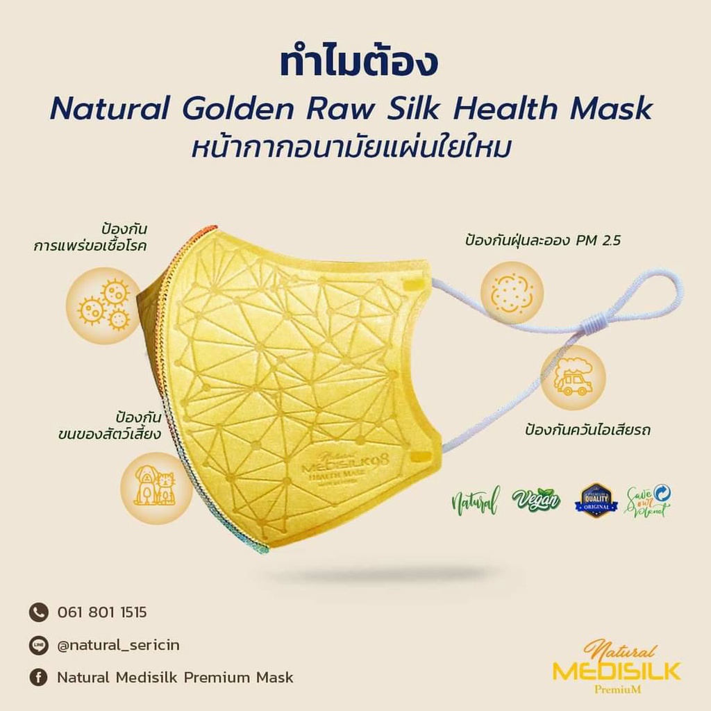 หน้ากาก แผ่นใยไหมทองคำ Natural Medisilk Premium Health Mask