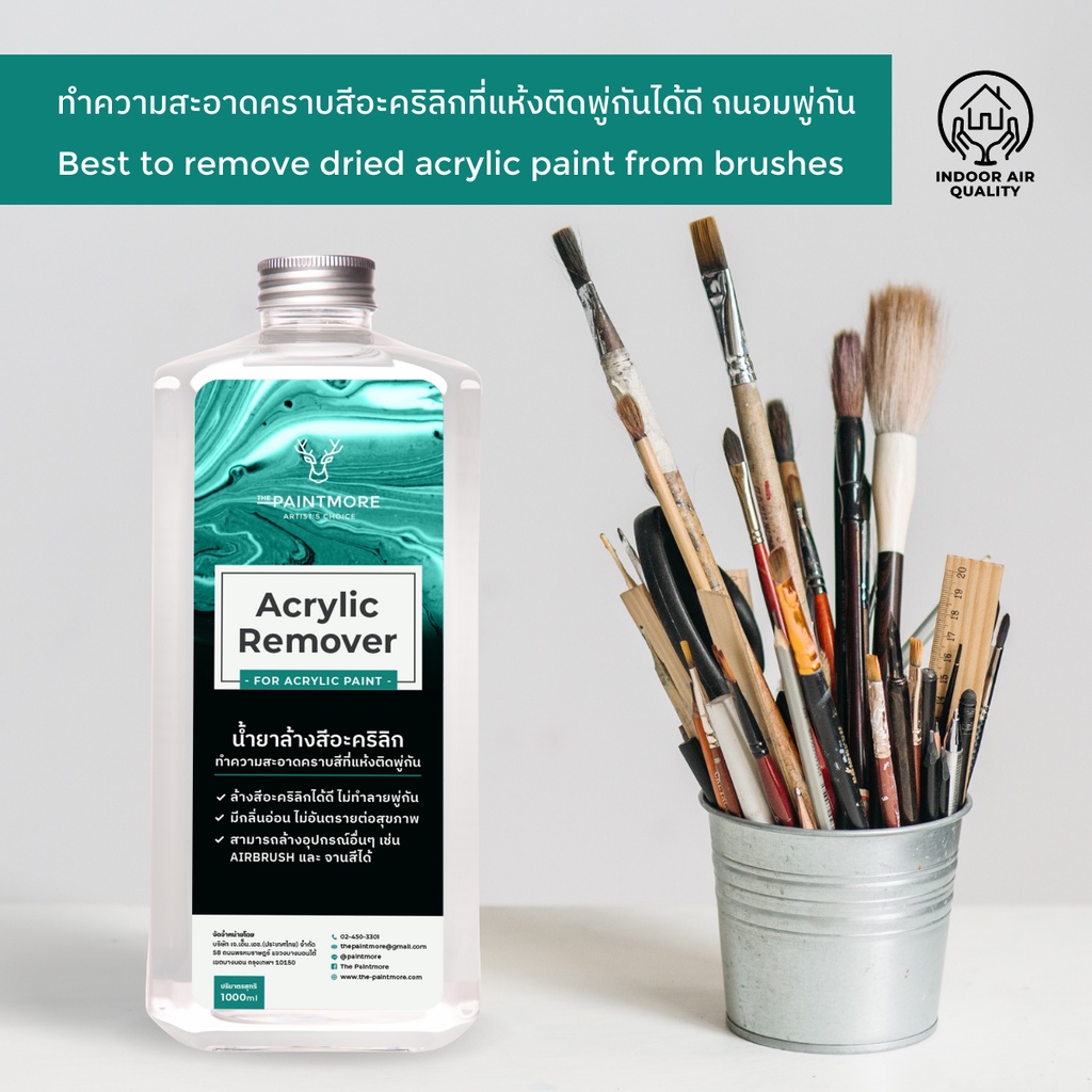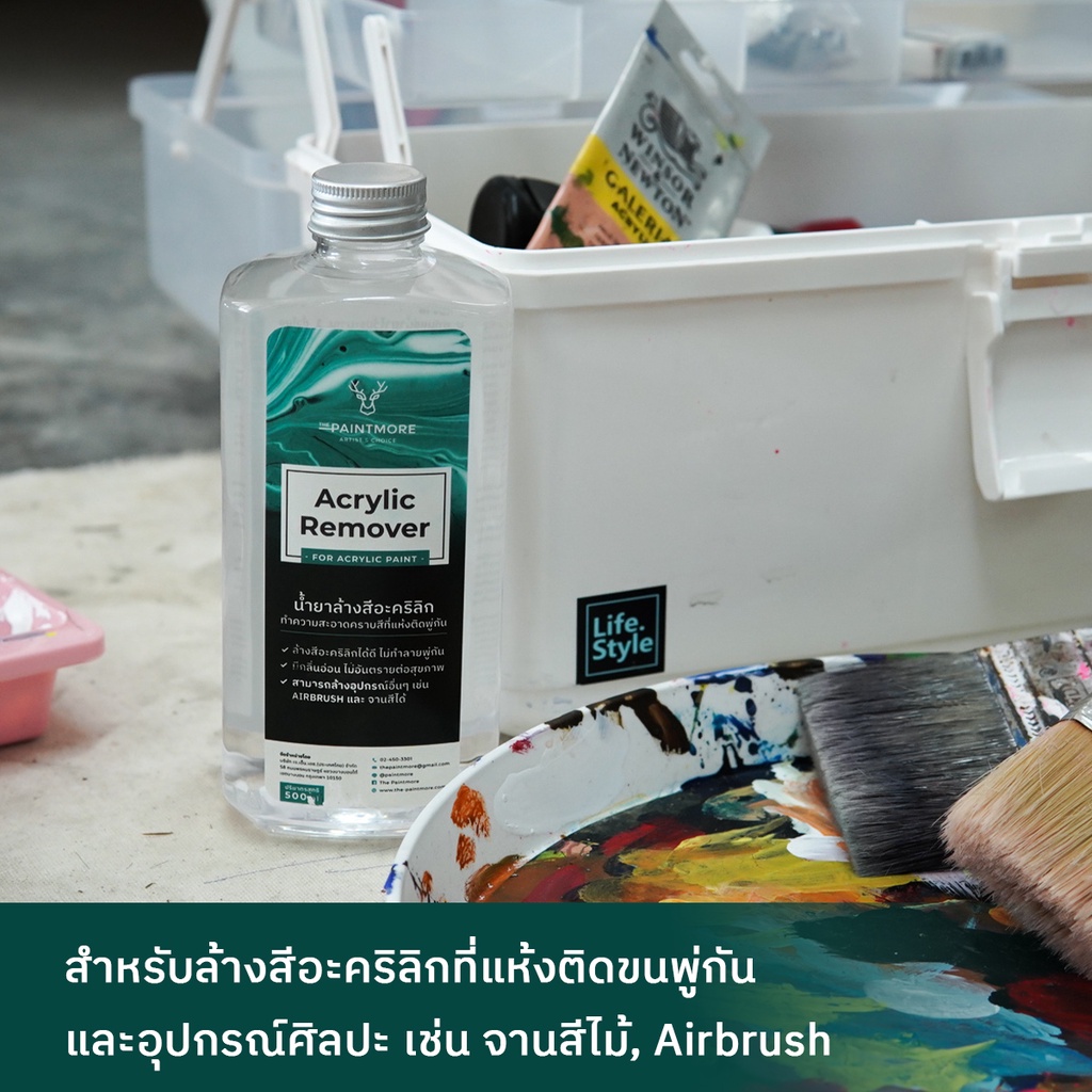 The Paintmore Acrylic Remover น้ำยาล้างพู่กัน,อุปกรณ์จากสีอะคริลิก 250ml ล้างสีอะคริลิกแห้งติดพู่กัน