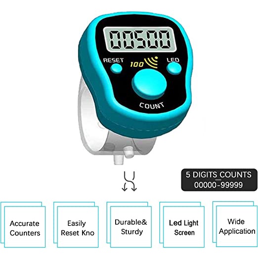 เครื่องนับดิจิตอลแบบสวมนิ้ว มีไฟสว่างในที่มืด เปลี่ยนแบตเตอรี่ได้ มีเสียงเตือน led finger digital counter buzz hundred