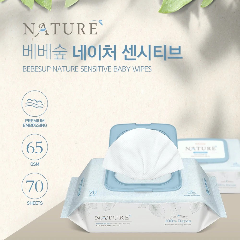 Bebesup ทิชชู่เปียกเช็ดทำความสะอาดผิวเด็ก ย่อยสลาย เนเจอร์ เซนซิทีฟ 70 แผ่น x 20 แพ็ค_Baby wipes