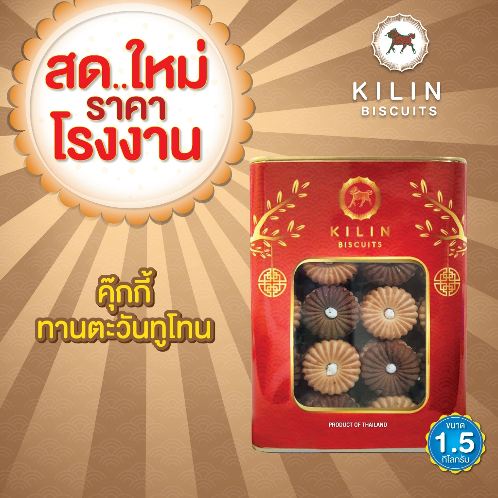ขนมปังปิ๊บ กิเลน คุกกี้ทานตะวันทูโทน รสนมผสมรสโกโก้ น้ำหนักรวมปี๊ป 1.5 กิโลกรัม