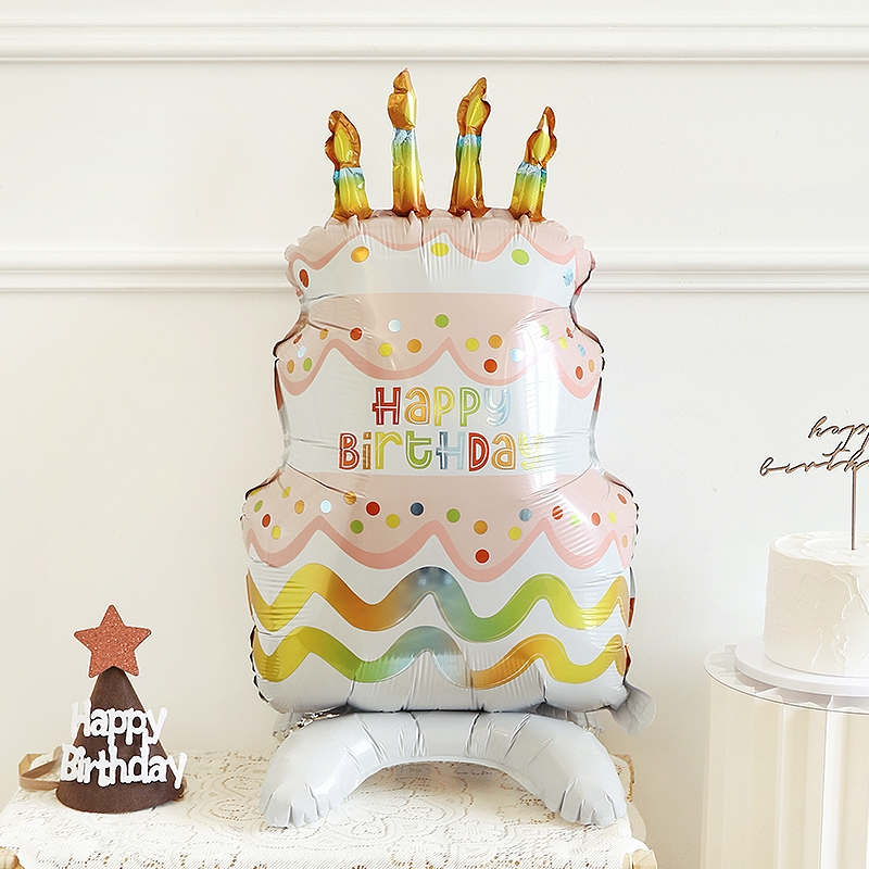 [ส่งด่วน] ลูกโป่งเค้กวันเกิด ลูกโป่งรูปเค้ก Happy Birthday ขนาดใหญ่