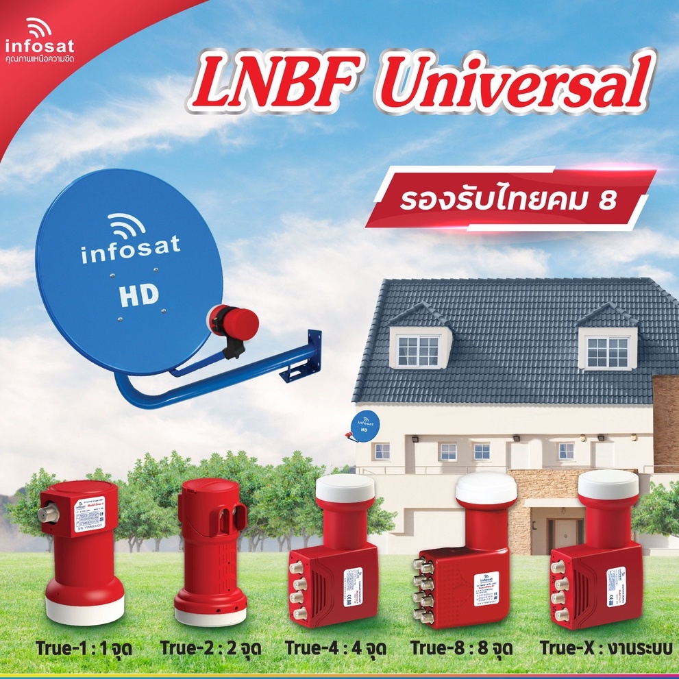 หัว LNB หัวรับสัญญาณดาวเทียม INFOSAT True 4 LNBF universal รับชมอิสระ 4 กล่อง