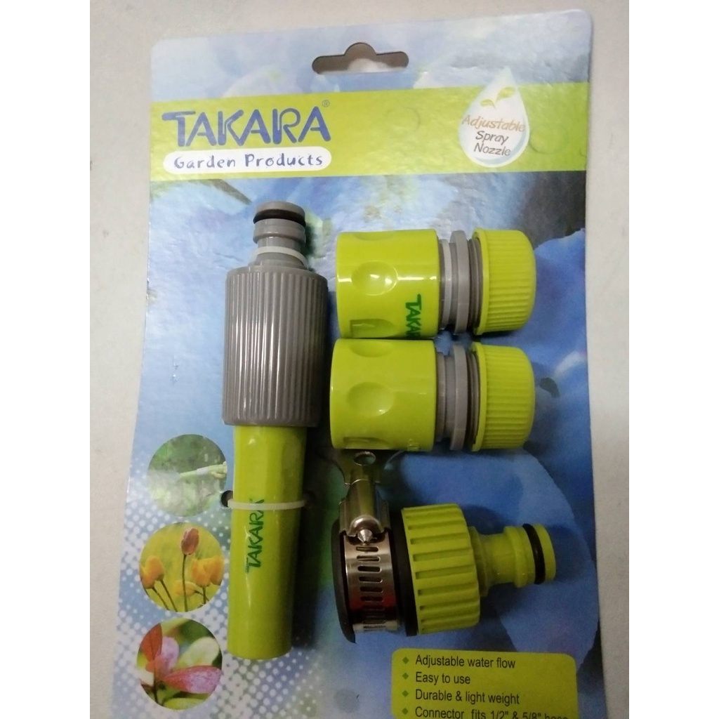 TAKARA หัวฉีดรดน้ำ หัวฉีดล้างรถ ทาการ่า TAKARA รุ่น DGT2001 รุ่นมาตราฐานปรับพร้อมชุดสวมเร็ว 4ชิ้น/ชุดใช้กับสายทุกยี่ห้อ